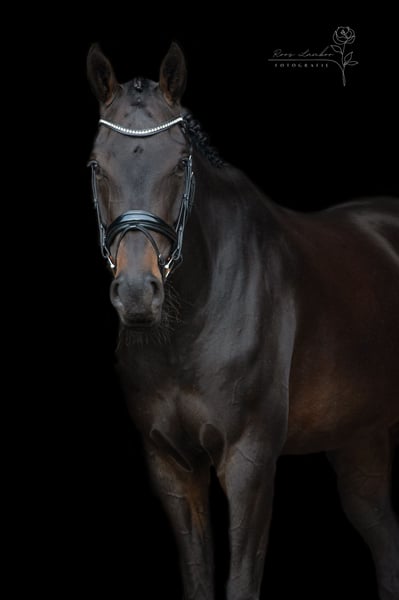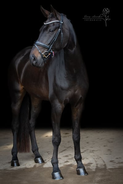 Reina Maica est une jument très agréable et totalement fiable ! Elle a presque 5 ans et mesure environ 1,65 m. Une magnifique fille de Fontaine TN x Valentino DDH. Avec sa belle robe noire-brune, c’est une véritable attraction en dressage. Elle est sage en compétition, dans d’autres terrains ainsi qu’en camion. Elle évolue actuellement en L2+5 et maîtrise déjà très bien le contre-galop. En résumé, c’est une jument très prometteuse pour l’avenir ! Radiographies approuvées en janvier 2024 ! Contrôle clinique à nouveau effectué en novembre 2024 !