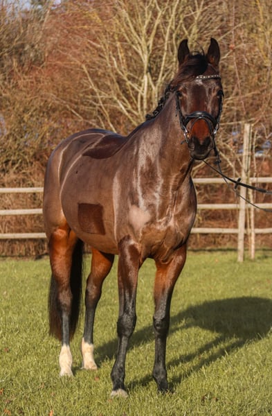 Esta yegua nacida en 2019 (Painted Black x Okeanos), actualmente de 1,53 cm, es un sueño para toda dama o adolescente que quiera tener un caballo con calidad, que sea muy fino y sin fuerza para montar. "Olivia" convence con sus 3 buenas, incluso GGA y una gran manejabilidad. Equipada con suficiente Go y una gran actitud de trabajo, esta yegua es simplemente divertida. Sin complicaciones e intrépido en el uso diario. Herrero, tijeras, paseos a caballo,... No hay problema. Un caballo del que enamorarse que trae alegría todos los días. Además, también es una verdadera joya para la cría. Paternidad: Dam Rumirell Rouge es la nieta de la yegua probablemente más importante de Oldenburg Rumirell von Grundstein II x Akzent II de la tribu Rudilore. De ella vienen seis hijos con licencia, todos hermanos de pleno derecho del apareamiento con el semental de sello de Oldenburg Rohdiamant, entre ellos Rubin Royal OLD, atléticamente exitoso y actualmente clasificado cuarto de los mejores caballos de doma del mundo (WBFSH) Versiber, Blue Hors Romanov y Blue Hors Rockefeller, por nombrar solo algunos. Rumirell transmite un ser único: sensibilidad, inteligencia y motivación Paternidad: Sire Painted Black, hijo de la leyenda del padre Gribaldi, ya era conspicuo como un joven semental en competiciones internacionales de caballos jóvenes. Fue ganador reserva en el Campeonato Mundial de Caballos de Doma Joven y ganador del Gran Premio de Suecia en 2005. En 2008 logró un magnífico 3er lugar en la final de la Copa del Mundo en Las Vegas y más tarde compitió en los Juegos Olímpicos de 2012 en Londres y los Juegos Ecuestres Mundiales en Caen. Para obtener más información, póngase en contacto con nosotros por teléfono
