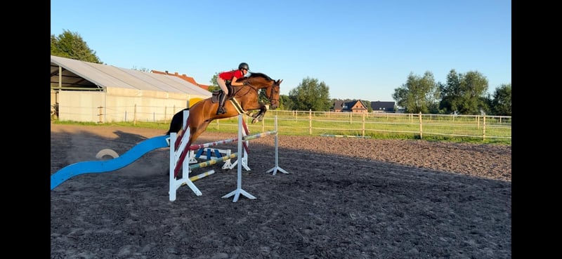 For sale is my 7-year-old mare Olympia Donna – a true heart horse. She is sired by Balou de Rouet × Michael, approximately 16.1 hh tall, and impresses with her rideability, lightness, and an exceptionally gentle nature. She has already proven herself in sport: - L-Show Jumping: 2nd place - A**-Show Jumping: won - E-Dressage: won Olympia always works honestly, aims to please her rider, and confidently carries her through courses, the arena, and cross-country. She is loading and farrier-friendly, has no bad habits, and is an absolute treasure both in handling and under saddle. Lovingly called Lumpi by us, she is loyal and affectionate with everyone. I wish for her a caring home where she can continue to be supported and appreciated. Interested? Please contact us at 017622099284 🐎✨