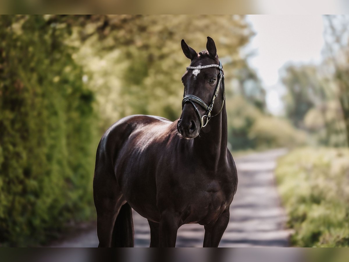 Miss Vemmie is a KWPN mare born in May 2017, approximately 16.1 hands tall. She is a jet-black granddaughter of Totilas, with an excellent dressage pedigree. Vemmie impresses not only with her noble appearance but also with her powerful, expressive movements that showcase her great potential. Vemmie has been backed and ridden, but she has not been actively trained further in recent years. She is a sweet, friendly mare who takes some time to settle in new environments and with new people. For riding, she is best suited for calm, patient equestrians who enjoy working with her gently and gradually, providing her with security and confidence through time and sensitivity. In handling, she is well-behaved and uncomplicated. She is healthy, herd-friendly, and familiar with both pasture turnout and stable life. Thanks to her high-quality pedigree and excellent movement, she could also serve very well as a broodmare. We are looking for a loving, long-term home where she can settle in peacefully and be given the time she needs to reach her full potential. Vemmie is located in Windhagen-Rederscheid, 53578. If you are interested or have any questions, we look forward to hearing from you. Additional photos and videos can be sent via WhatsApp at +49 1590 1725817. A getting-to-know-each-other visit is possible at almost any time. For the introduction, we charge a flat fee of €30. Of course, there is also the option to have her transported directly to her new home.