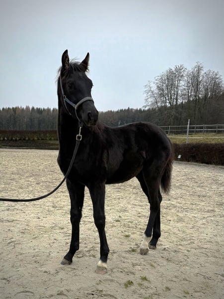 Zum Verkauf steht das vielversprechende Rapp-Hengstfohlen „VALENTINO VR 46“ mit interessanter Abstammung und hervorragender Perspektive für den gehobenen Freizeit- und Dressursport. Name: Valentino VR 46 * 12.06.2025 🖤 Rappe Abstammung: D‘Agostini S x Don Juan De Hus Valentino überzeugt durch sein zugängliches, selbstbewusstes und menschenbezogenes Wesen. Er zeigt sich altersgemäß neugierig, freundlich und im Umgang sehr angenehm. Er präsentiert sich sehr bewegungsstark, ist langbeinig, mit einer äußerst aktiven und kraftvollen Hinterhand, guter Balance und viel natürlicher Elastizität. Damit bringt er tolle Voraussetzungen für die spätere Ausbildung im Dressursport mit, eignet sich aber ebenso hervorragend für ambitionierte Freizeitreiter. Ein typvoller junger Rappe mit Charme, Qualität und Entwicklungspotenzial. Wir wünschen uns für ihn ein liebevolles Zuhause in dem sein Potenzial geschätzt wird. Preis ist VHB.