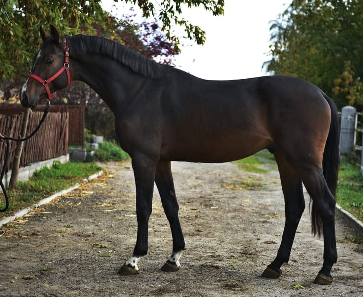 Dreamy KWPN Stallion for Sale! We are offering an impressive dark bay KWPN stallion for sale. Born in 2023, he has already reached a height of 16.8 hh and shows great potential to become an outstanding sport horse. This stallion is characterized by his excellent jumping ability and remarkable movement quality. He is well-suited for show jumping and already demonstrates promising progress in his training. His friendly temperament and eagerness to learn make him an ideal partner for ambitious riders. He is well-socialized and has gained initial experience in handling with people. If you are looking for a talented and promising show jumper, this stallion is the perfect choice for you! For more information or to arrange a viewing, please do not hesitate to contact us. We look forward to your inquiry!