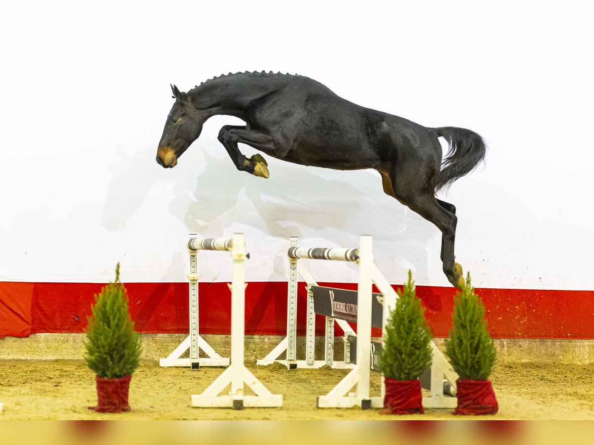 Tony JT is a long-lined two-year-old stallion who jumps in a very consistent way. He shows scope, good body use and a powerful canter. In free jumping he demonstrates balance, awareness and a natural understanding of the fence. His way of moving and jumping fits the modern sporthorse type and makes him an exciting prospect for the future. He is bred from the combination Carrera VDL x Douglas. Sire Carrera VDL competed at 1.60m level and is a proven sport stallion within the VDL breeding program, known for producing horses with scope, mentality and reliability. On the dam’s side we find Douglas, an international top-level performer and a highly influential sire of strong, durable showjumpers. The dam herself competed at 1.40m, and further back in the damline several horses have competed at 1.50m to 1.60m level. This family is known for consistency, strength and long-term sport performance. Tony JT combines a modern jumping style with a powerful and proven pedigree, making him a very interesting young stallion for the future sport.