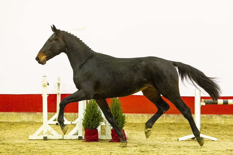 Tony JT è un stallone di due anni con un allineamento lungo, che salta in modo molto costante. Mostra ampiezza, buon utilizzo del corpo e un trotto potente. In salto libero dimostra equilibrio, consapevolezza e una naturale comprensione del salto. Il suo modo di muoversi e di saltare si adatta al tipo di cavallo sportivo moderno e lo rende un promettente talento per il futuro. È nato dall’incrocio tra Carrera VDL e Douglas. Il sire Carrera VDL ha gareggiato a livello 1,60 m ed è un stallone da sport affermato nel programma di allevamento VDL, noto per produrre cavalli con ampiezza, mentalità e affidabilità. Dal lato materno troviamo Douglas, un cavallo di livello internazionale e stallone di grande influenza, noto per aver prodotto saltatori forti e resilienti. La madre ha gareggiato a 1,40 m, e più indietro nella linea materna diversi cavalli hanno competuto tra 1,50 m e 1,60 m. Questa famiglia è rinomata per la costanza, la forza e le prestazioni sportive a lungo termine. Tony JT combina uno stile di salto moderno con un pedigree potente e comprovato, rendendolo un giovane stallone molto interessante per il futuro dello sport.