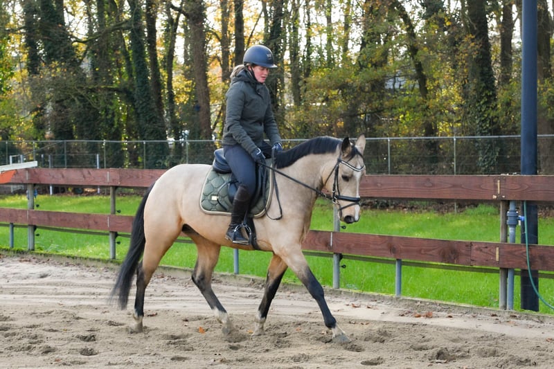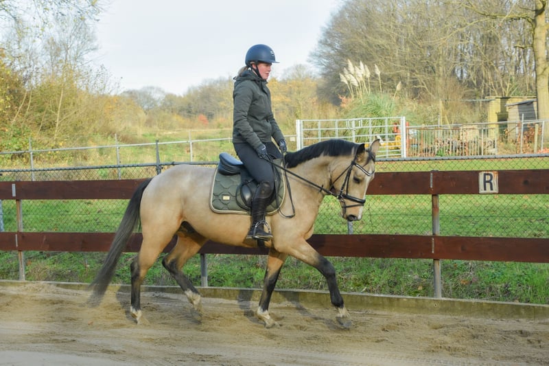 FEI PROSPECT / APPROVED STALLION! ⭐️ Heros is a 3,5 year old D-pony approved stallion / stud for breeding (and also sport), who measures 1.48m. With his beautiful buckskin color, he's a real eye-catcher! He has Zangersheide papers and his pedigree is: Hamlet x No Limit x Joost. His sire is the cremello stallion Hamlet, who is approved by the AES studbook. His dam's sire is the KWPN stallion No Limit, who jumped international at 1.60m level. No Limit has a jumping index of 150 with high reliability, placing him among the top performers. He is also known for his excellent offspring. No Limit is a offspring of the Preferent stallion Indoctro, who became the performance champion as a 3 years old. He also won the IAN Trophy in the 4 years old competition. At the age of 6, he competed in the World Championships for Young Show Jumpers in Lanaken, where he finished 6th. At 8 years old, he was already jumping at the 1.40/1.50m level, winning the Audi Cup and the stallion show jumping competition in Dortmund. Heros's dam line also includes the Holsteiner Preferent stallion Joost, who jumped at 1.50m. As you can see, Heros has a very beautiful and successful bloodline. https://www.horsetelex.nl/horses/pedigree/2630307/heros-by-esclinic-z Heros has incredibly good gaits! In the photos and video, we showed him jumping free for the very first time when he was only 2,5 years old (a year ago), jumping up to 1.20m straight away. He showed a very nice jump with a good back leg technique. We also saw that he really enjoyed jumping! Although he's an incredibly good jumper, we also expect that he will do good in dressage! He's a young, allround pony with plenty of potential. We have high expectations for him! Even though Heros is still young and a stallion, he's incredibly well-behaved and easy to handle! You wouldn't know he's still a stallion at all. He can also stay outside and on the stable next to the mares. He's very sociable with other horses. He knows how to groom/brush, lift legs, use a blanket, use a halter and of course, walk on a lead. We've also done some spook training with him. He'll easily walk past an umbrella, over a tarp, or even a wooden plank! We've now slowly started with making him saddle broken. He knows how to lunge with a bridle and saddle. He has been now under the saddle only a few times. He has also been on a strange arrea and has done his first jump under the saddle. He's doing it all good, but of course, he still has a lot to learn. He knew the trailer and little truck and is quietly on the road. He has no (stable) vices! He has clean X-RAYS for his neck, back, and legs without any remarks! He’s recently approved as an approved stallion by the EU-recognized RBP studbook. We already expect two foals from him next year and the mares where pregnant at the first time trying. A great opportunity for someone looking for a high quality, allround children's and sport/jumping pony or approved stallion for breeding. He's also interested for the international FEI competitions in the future. Of course, it's up to the new owners whether they leave him as a stallion or castrate him. € 11.500