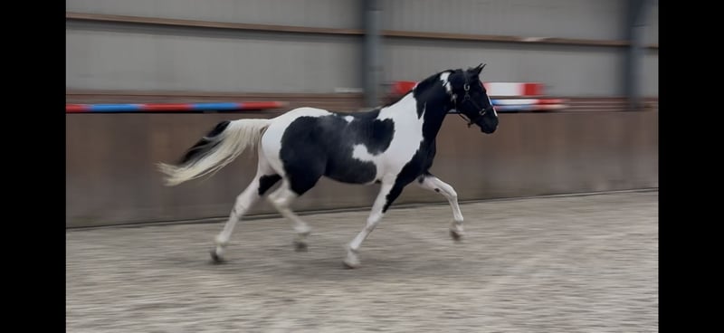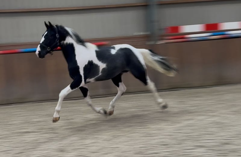 Nous vous présentons Sake vd Lisdodde. Un étalon avec du charisme, de type moderne. Il se distingue naturellement par son magnifique pelage pie. Actuellement, il mesure plus de 1,65 m. Il est honnête et gentil dans ses interactions. De plus, il n'a pas encore été débourré. Il possède des mouvements amples. Dans toutes les allures, il est léger sur ses pieds et a une bonne technique. Il montre également un bon saut. En résumé, un étalon pie exceptionnel avec des possibilités polyvalentes. Pour toute demande, n'hésitez pas à appeler ou à envoyer un message. Une vidéo est disponible sur demande.
