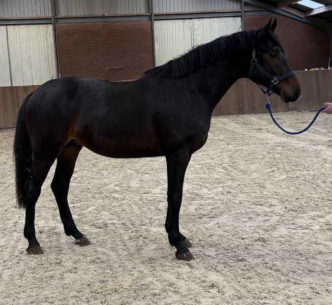 Caballo de 3 años muy prometedor. Un modelo hermoso con buen frontal y buenas conexiones. Correcto en las patas y libre de defectos (de establo). En movimiento, muestra una postura elegante y avanza con mucha impulsión y una técnica de patas correcta. Además, destaca por su fuerte uso de las patas traseras. Para interés, por favor llame o envíe un WhatsApp. Teléfono: +31(0)643197337