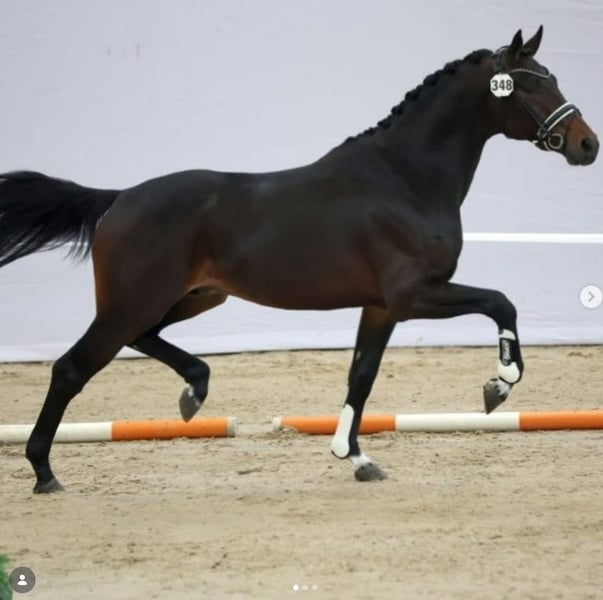 Touch of Gold Verdoni KWPN Extra Gold X Toto Jr. X Rubinstein 1 +/- 1.66cm 100% gezond inclusief rug en hals Touch of Gold Verdoni komt uit de eerste jaargang van de Westfaalse kampioenshengst Extra Gold Afgelopen jaar heeft zijn eerste jaargang op de Duitse hengstenkeuring een fenomenale indruk achtergelaten. Zijn moeder Maia B komt uit de lijn van Blue Hors Nordic. Haar eerste veulen werd een dochter van de hengst Kjento. Deze merrie is inmiddels 4jaar en heeft afgelopen jaar het Nationale kampioenschap gelopen bij het KWPN, waar zij de reserve titel pakte. Deze merrie is nog steeds in ons bezit. Touch of Gold Verdoni is het 2e kind van Maia B. Hij is net zoals zijn zus erg talentvol, super leergierig en werkwillig. Hij onderscheid zichzelf in zijn karakter. Onwijs zeldzaam braaf. Zijn looks spreken ook voor zich, een mega dikke hals, een lange voorpluk, een super achterbeen en hij staat keurig recht op zijn voeten. Voor deze knappe hengst zoeken wij een sportief huis waar hij alle liefde en aandacht krijgt om zijn talent te ontwikkelen. Afgelopen juli 2025 is hij volledig goedgekeurd zonder op of aanmerkingen. Herkeuren mag, kosten koper. Filmpjes aanwezig, Hij is te bezichtigen In Apeldoorn, Nederland Voor meer informatie graag even bellen of whatsappen: +31636431338