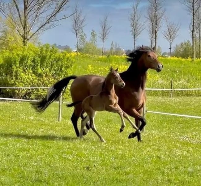 **Te koop: Veelbelovende KWPN-hengst (2023)** Buitenkans: deze hengst heb ik zelf gefokt en verkoop ik rechtstreeks uit de opfok. Hij moet snel verkocht worden. Als gevolg van privé omstandigheden ben ik momenteel niet in staat het eerste stuk zelf op te pakken, daardoor gunstig geprijsd. Deze prachtige KWPN-hengst, geboren in 2023, is een indrukwekkende verschijning met een stokmaat van circa 169 cm. Hij heeft een donkerbruine kleur en een elegante uitstraling. Als dressuurpaard toont hij veel potentieel en heeft hij de juiste bouw en beweging om uit te groeien tot een succesvol sportpaard. Zijn afstamming en kenmerken maken hem bijzonder geschikt voor de dressuurtoekomst. Uit de lijn komen meerdere goedgekeurde hengsten en hij komt zelf uit een NMK merrie. Ook oma is een NMK merrie en heeft door haar nakomelingen het predikaat preferent gekregen. Overgroot oma heeft de predicaten prestatie en preferent gekregen op basis van nakomelingen. Ben je op zoek naar een veelbelovend KWPN-dressuurpaard met een mooi uiterlijk en een sterke basis waar je alles nog naar eigen hand kunt zetten en bepalen? Neem gerust contact op voor meer informatie of een kennismaking met dit veelbelovende paard!