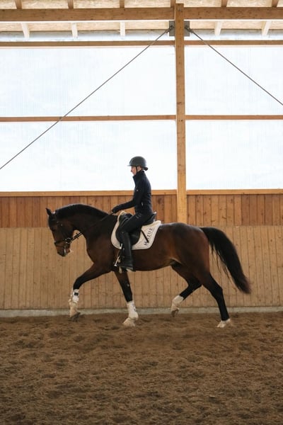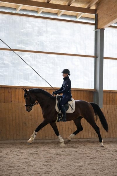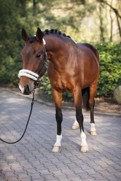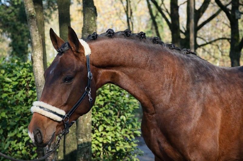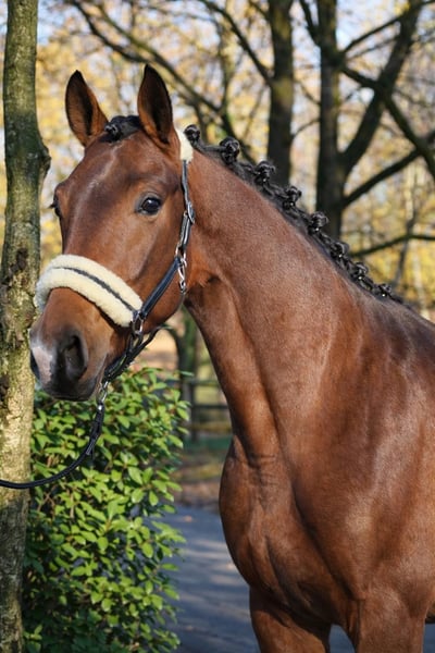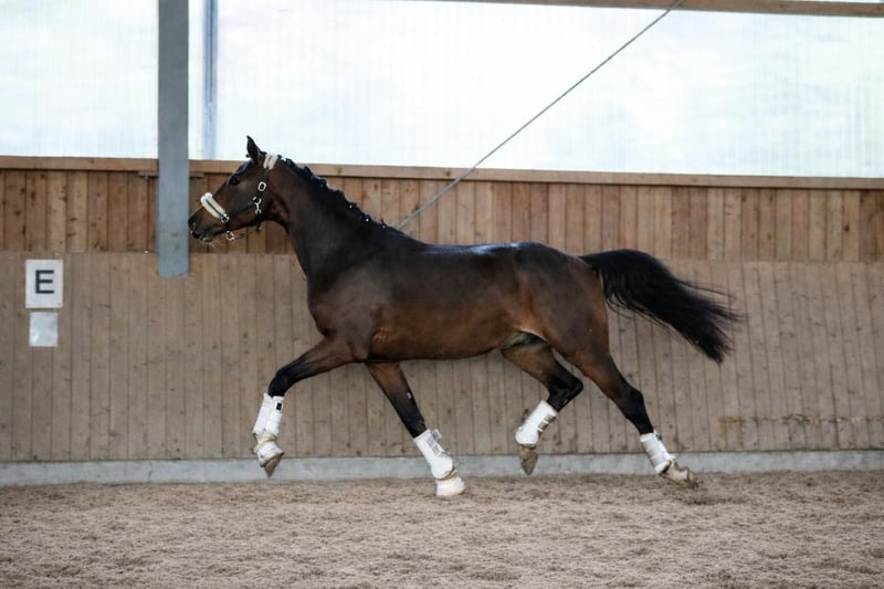Dieser vielversprechende 3-jährige KWPN-Hengst mit TOP Charakter präsentiert sich als herausragender Youngster mit besten Anlagen für den gehobenen Sport im großen Viereck. Absolut nicht hengstig mit besten Manieren. Der braune Sohn des Expectation aus einer Toto Jr-Mutter – und damit aus dem ersten Jahrgang des Expectation – überzeugt bereits jetzt mit seiner großzügigen Größe von 1,70m, seinem typvollen, sehr hübschen Exterieur und einer für sein Alter außergewöhnlich weit entwickelten Gesamterscheinung. Der Hengst entstammt einem leistungsstarken, sporterfolgreichen Mutterstamm, was seine Perspektive für eine spätere Karriere im Dressursport zusätzlich unterstreicht. Drei durchweg sehr gute, ausdrucksstarke, taktreine und dynamische Grundgangarten runden sein Gesamtbild ab und lassen keinerlei Wünsche hinsichtlich seiner Bewegungsqualität offen. Auch gesundheitlich bietet er sehr gute Voraussetzungen: Ein aktueller klinischer und röntgenologischer TÜV liegt ohne große Auffälligkeiten vor. In der täglichen Arbeit zeigt er sich altersgemäß gefördert, wurde sorgfältig und korrekt anlongiert und meistert nun seine ersten Ritte in allen drei Gangarten frei unter dem Reiter. Er überzeugt dabei durchweg mit seinem absolut einwandfreien Charakter. Ein Jungpferd, das einfach Spaß macht. Er ist außergewöhnlich artig im Umgang, stets freundlich und gelassen und benimmt sich sowohl beim Schmied als auch beim Tierarzt vorbildlich. Ein junger Hengst mit exzellenter Abstammung, hervorragender Bewegungsqualität und bestem Interieur – ein echter Nachwuchssportler mit Zukunftspotenzial. Momentan wird er bei uns auf die Sattelkörung vorbereitet. Selbstverständlich kann er bei Bedarf auch bei uns gelegt und weiter ausgebildet werden. Wir suchen für diesen tollen Junghengst ein förderndes Zuhause in besten Händen. Jetzt noch zum Youngster-Preis. Der Preis steigt bei weiterer Ausbildung. Wir freuen uns über nette Anfragen und können dann gerne einen Termin zum Kennenlernen vereinbaren. Mehr Informationen und Videos gerne auch via WhatsApp oder telefonisch unter +49 173 7359633