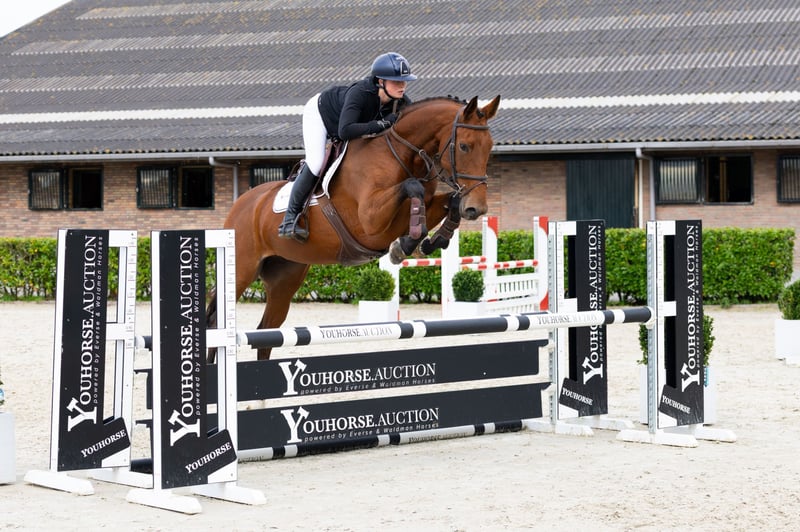 The four-year-old Regina-Leen is still green but well-behaved and jumps with a nice technique She takes her rider nicely to the fences. We think she could also be interesting as a hunter. Her half-brother Inout W competes internationally at 1.45m level. Sire Epleaser van ’t Heike (1.60m Grand Prix) is a son of the Olympic mare Valentina van ’t Heike, ridden by Jos Lansink. Dam Easy-Leen (Carambole) is a KWPN elite mare who competed up to 1.30m level. Granddam Rosaleen (Lord de Luxe) is bred out of the 1.60m Grand Prix mare Kyraleen (Quidam de Revel x Voltaire), with whom Caroline Müller was successful. https://youhorse.auction/en/auction/Regina-Leen-EPLEASER-VAN-T-HEIKE-x-CARAMBOLE