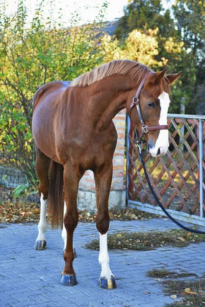 Beautiful young stallion born in 2022, showing great potential for sport and breeding. This elegant chestnut has an excellent conformation, expressive movement, and a kind temperament — a true eye-catcher with a promising future ahead. 🧬 Pedigree Highlights: • Sire: From a very top pedigree, currently active and highly regarded. • Dam: Successfully competed up to 145 cm, proving both talent and athleticism. This young horse combines quality bloodlines, modern type, and scope — perfect for a rider or breeder looking for a serious prospect. 📞 For more information please contact: +36 30 639 2427 Thank you and all the best! ☺️