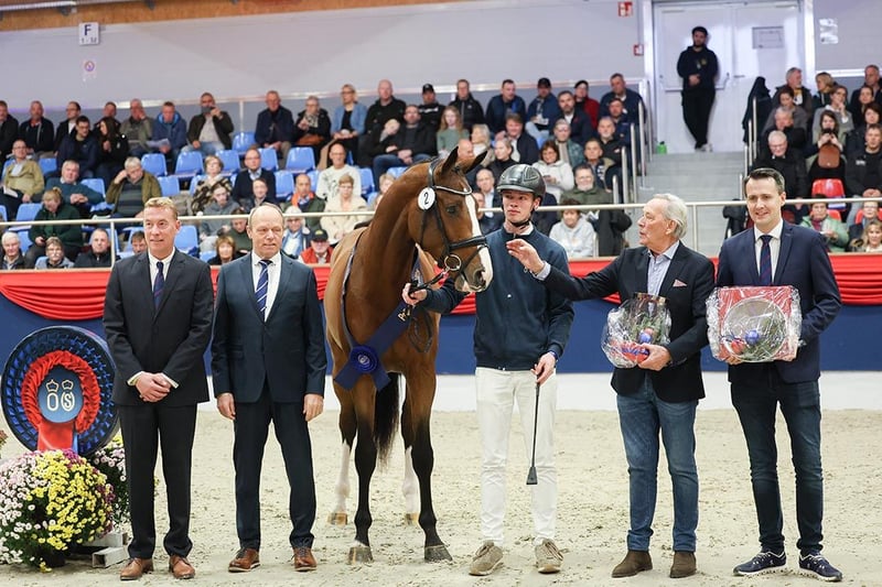 Mit großer Freude präsentieren wir Candy Cumano, einen außergewöhnlichen jungen Hengst aus der erfolgreichen Springlinie des Candy de Nantuel, der sich bei seiner Körung eindrucksvoll präsentierte und aufgrund seiner herausragenden Qualität direkt als Prämienhengst ausgezeichnet wurde. Bereits bei der Vorauswahl überzeugte Candy Cumano mit modernem, kraftvollem Exterieur und einer starken Präsenz. Am Sprung zeigte er eine beeindruckende Kombination aus Vermögen, Reflexen, Technik und Intelligenz. Besonders hervorzuheben sind sein energischer Absprung, die sehr gute Bascule und sein kraftvolles Hinterbein. Abstammung Der Vater Candy de Nantuel hat seine Eigenleistung im gehobenen Springsport eindrucksvoll unter Beweis gestellt. Unter dem Sattel von Pénélope Leprévost war er erfolgreich bis 1,55 m. Die Verbindung aus sportlicher Härte und dem begehrten Selle Français-Blut qualifiziert ihn klar als Spitzenvererber. Der Mutterstamm untermauert die hohe züchterische Qualität eindrucksvoll. Die erste Mutter Isolde ES ist unter anderem Mutter des gekörten und international bis 1,45 m erfolgreichen La Costa ES v. Mosito van het Hellehof, der unter Frank Schuttert in den Niederlanden erfolgreich im Sport steht. Candy Cumanos Halbschwester One and Only ES v. Kashmir van Schuttershof ist die Mutter des OS-Siegerhengstes 2025 Cashmere Blue, der seinen 50-Tage-Test mit einer gewichteten springbetonten Endnote von 8,85 als bester Hengst abschloss. Der Muttervater Cumano zählt zu den absoluten Ikonen des Springsports. Unter Jos Lansink gewann er 2006 den Weltmeistertitel bei den Weltreiterspielen in Aachen und nahm an den Olympischen Spielen in Athen und Hongkong teil. Auch züchterisch weist Cumano eine herausragende Bilanz auf: Über 20 gekörte Söhne sowie mehr als 50 international erfolgreiche Nachkommen bis 1,60 m sprechen für seine nachhaltige Vererberkraft. Auch die zweite Mutter Centerfold Z lieferte zahlreiche sportlich erfolgreiche Nachkommen, darunter Air Nike Z van de Helle v. Air Jordan Z (1,45 m), Gracia ES v. Last Man Standing (1,40 m) und James Bond ES v. Air Jordan Z (1,40 m). Mit Chellano Z steht in dritter Vatergeneration eine weitere Legende des internationalen Springsports. Ebenfalls unter Jos Lansink bis in schwerste Prüfungen erfolgreich, etablierte er sich früh als herausragender Vererber. Mit 35 gekörten Söhnen und nahezu 100 international erfolgreichen Nachkommen bis 1,60 m verleiht Chellano Z diesem Pedigree einen unbestreitbaren Leistungsstempel. In der dritten Generation der Mutterlinie steht Nulora S, die weitere international erfolgreiche Sportpferde hervorbrachte, darunter Dutch Blue v. Chacco-Blue (1,50 m) und Kyara Rock v. F-One USA (1,45 m). Ergänzt wird die Leistungsdichte des direkten Mutterstamms durch sportlich herausragende Pferde bis auf 1,60-m-Niveau, wie Cupcake Z v. Chacco-Blue (Sanne Thijssen) und USA Today v. Heartbreaker (Robert Whitaker). Diese außergewöhnliche Leistungsdichte über mehrere Generationen bildet eine fundierte Basis für die Weitergabe von Rittigkeit, Technik und Vermögen für den internationalen Springsport. weitere Informationen unter candycumano.sosath.com