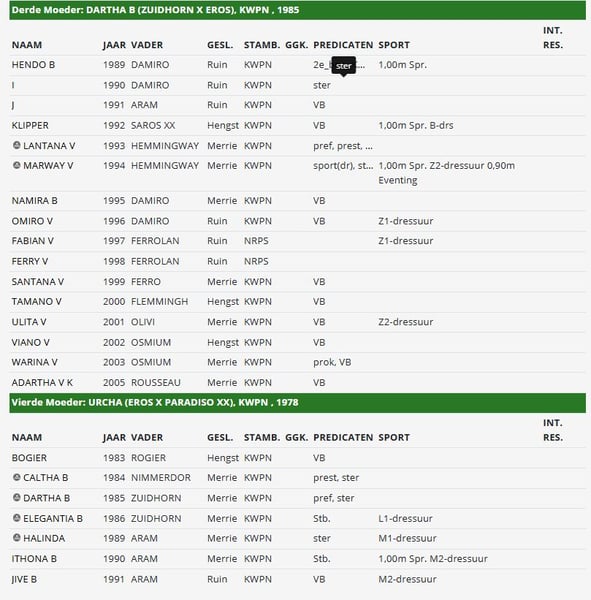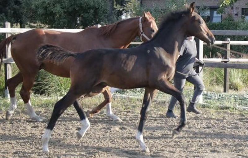 Hengstfohlen (geboren am 14.04.2025) von Kjento aus Hytana V (Elite IBOP D-OC) v. Quaterback x ster pref pres v. Hemmingway. Aus der Lantana-Linie, aus der viele gekörte und Sportpferde hervorgehen. Vater Kjento (Negro x Jazz) ist FEI-Weltmeister der 6- und 7-jährigen Dressurpferde & KWPN Pferd des Jahres 2022. Die Mutter Hytana V hat das Elite-Prädikat und ist eine sehr stark bewegende Nachkommin des berühmten Hengstes Quarterback, der viele gekörte Hengste und Sportpferde in Deutschland hervorgebracht hat. Großmutter Lantana V ist Mutter vieler Sport- und Zuchtpferde. Sie ist unter anderem die Mutter von Vitana V (mv Donnerhall), die international Grand Prix unter Stephanie Peters und Morgan Brabançon Mestre geritten ist, und die Mutter der Elite/LT Stute Mount St. John Jazz Dance. Vitana V ist wiederum die Mutter von Cennin, der viele internationale Grand Prix-Erfolge unter Madeleine Witte erzielt hat. Außerdem ist Lantana V die Mutter des KWPN ggk Hengstes Lantanas (LT), der Mutter des AES ggk Hengstes Elevation und der Urgroßmutter des KWPN ggk Hengstes Dark Rousseau. Link HorseTelex: https://www.horsetelex.nl/horses/pedigree/2701412/vincen-roville Weitere Informationen, Videos oder eine Besichtigung? Kontaktieren Sie uns gerne (per WhatsApp +31652220717). Für eine sportliche 🏠/schnelle Abwicklung ist der Preis verhandelbar.