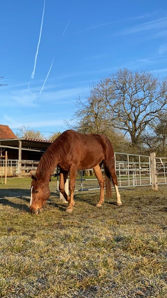 Dioniss ist ein bildhübscher Wallach, der mit seinen drei wunderbaren drei Grundgangarten und seiner tollen Rittigkeit überzeugt. Vor gut zwei Jahren habe ich ihn gekauft, selbst angeritten und mit viel Freude Schritt für Schritt ausgebildet und weiter gefördert. Dabei war er stets neugierig, motiviert und voller Spaß bei der Arbeit. Er kennt die Grundaufgaben und meistert diese souverän. In der Bodenarbeit, besonders bei der Stangenarbeit, ist er mit Begeisterung dabei. Das Gelände kennt er ebenfalls – dort zeigt er sich interessiert, mutig und immer positiv eingestellt. Dioniss ist sehr menschenbezogen, freundlich und ein treuer Partner, der stets das Beste geben möchte. Er ist offen für neue Aufgaben und möchte weiter gefördert werden. Den Hufschmied kennt er und verhält sich dabei brav und gelassen. Mit seiner hervorragenden Abstammung bringt er viel Potential mit, das entdeckt und gefördert werden möchte. Jedoch steht Dioniss noch am Anfang seiner Ausbildung und braucht daher einen Partner, der ihn liebevoll auf seinem weiterem Weg begleitet und fördert. Dioniss ist somit kein Anfängerpferd. Bei Interesse oder weiteren Fragen gerne eine WhatsApp oder telefonisch melden unter der Nummer 015155564960.