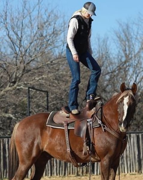 Check out Kobe! We adore this guy, he is the biggest, happiest joy of a pet to have around. He has a stellar personality, extremely peaceful, gentle, happy, and SO KIND! He is always happy to see you, and comes up to you, ready to go do whatever you have planned for his day. He is a puppy-dog, and so much fun to be around. All of the girls love riding this one, he is incredibly smooth gaited, soft, and willing. A very comfy cozy, push-style that is so extremely easy to ride! He will float around with no bridle and is very honest and solid. Tolerates all our shenanigans and loves to be messed with and have a job. This big gentle giant is ready to go on and be finished as a dressage horse, cowboy dressage, hunter, jumper, eventer, or fox hunter! He is an incredible floaty mover – this guy will make a big time horse in the right program! He trail rides out quietly alone or in a group, loves going to town and into crowds and traffic as well. Superb ground manners, easy to catch, lead, load, hauls like a gentleman, stands tied anywhere for tacking, grooming, great to bridle, and great with his feet. Great turned out with others in a group, easy to get along with, and loves being up in the barn as well. No vices or bad habits,
