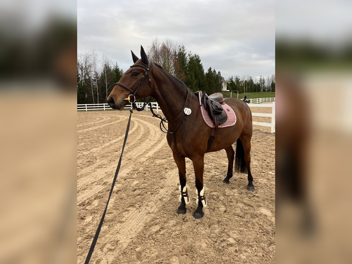 Katania is a 2020 born homebred mare that is 165 cm height. She had a foal so not been rushed into sports. She has competition experience at small classes. With a right work she can drvelop into a nice jumping horse. Though she has abilities to jumo she is easy enough for amateurs or kids. Totally safe, very reliable. Perfect for hacking and hobby riding too. Super sweet personality and very easy in all daily activities. Clear xrays, no defects or bad habits. Price 10 000 eu + VAT Located in Lithuania, helping to organize paperwork and transport.