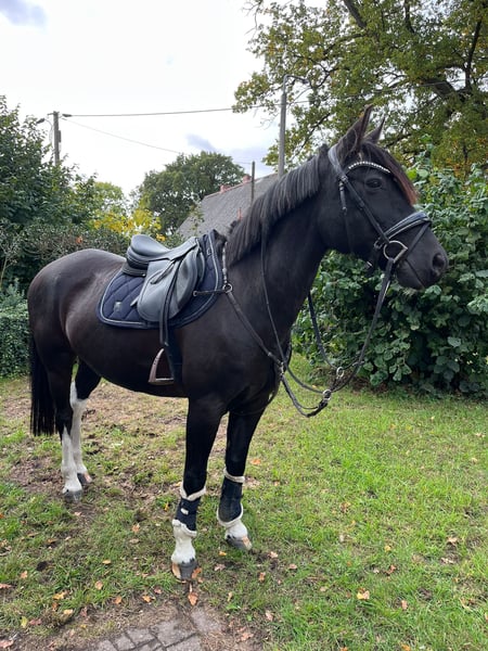 Zuverlässiger Lehrmeister mit Herz zu Verkaufen. Zum Verkauf steht unser 2008 geborener Wallach Mantis. Mantis hat einen Stockmaß von ca.1,54m. Mantis ist ein sehr erhliches, verlässliches Springpferd,mit viel Potential und Motivation. Im Pacour trägt er ein mit leichtig keit und liebt es gut abzuschneiden und zu zeigen was er kann. Er ist auf Turnier mit mir bis zur Klasse A** gelaufen. Er kann manchmal etwas Hecktisch beim Springen sein, aber trotzdem ist er gut händelbar und rittig. Gelände reiten ist bei ihm auch kein Problem, jedoch muss man ihm bei Galloppieren manchmal etwas zurück halten Mantis wird bei uns nur im Offenstall gehalten und steht Problem los mit anderen Pferden zusammen.