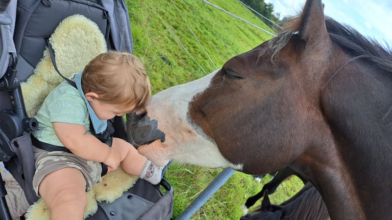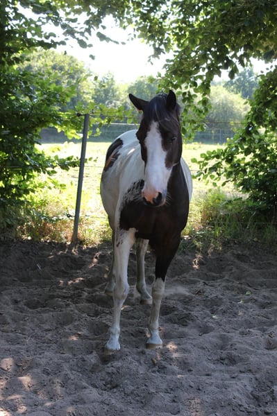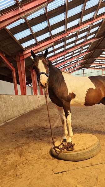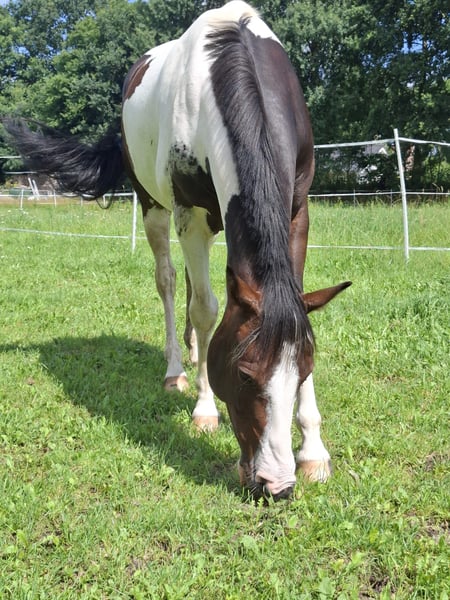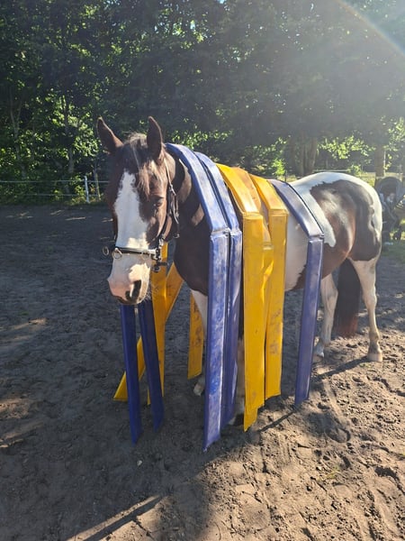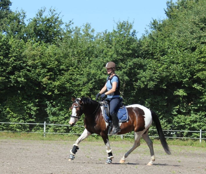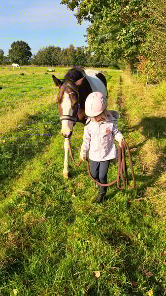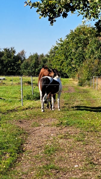 Mit schweren Herzen muss ich wegen Familierer Veränderung für mein Pony ein neues 5 Sterne Zuhause suchen . Shadow ist ein 7 jähriger vielseitiger Lewitzer Wallach mit einem Stockmaß von ca 145 cm , deckt durch seinen Körperbau sehr gut ab und wirkt deutlich größer . Er ist ein absoluter Herzensbrecher und sucht die Nähe & Kontakt zum Menschen , ist immer freundlich, neugierig , zugewant . Auch wenn er , wenn es um seine Möhrchen geht etwas gierig werden kann 🥰 Auf der Koppel kommt er einem mit einem freundlichen grummeln entgegen . Steht entspannt ohne zu hampeln beim putzen , sattels ect. Er ist für jeden Spaß zu haben und kennt Schrecktraining mit Planen, Flatterband ect. Auch Strand, Geländepark , Stoppelfeld und Turnierplatz sind keine Fremtwörter für ihn Er ist als Turnierpony eingetragen Er wird bei mir abwechslungsreich gearbeitet das heißt reiten auf dem Platz / Halle , Eqikenetic, Trail , Stangenarbeid aber auch ausreiten gehören zu seinem alltäglichen training. Auch kennt er es am Kinderwagen zu laufen. Ich reite ihn hauptsächlich freizeitmäßig in der dressur er macht aber auch über dem Sprung eine gute Figur und es macht ihm auch deutlich spaß. Er ist eher der gemütliche Typ , als ein Rennsemmel aber keinesfalls triebig. Meine 6 jährige Tochter reiten alle 3 Grundgangarten an der Longe auf ihm. Aufgrund seines Alters würde ihn aber noch nicht als reines Kinderpony sehen. Er steht bei uns in einer großen Gemischten Herde mit ca 20 Pferden . Im Sommer 24/7 auf Koppel und im Winter Nachts in der Box . Im Sozialverhalten zeigt er sich auch hier freundlich und eher rangniedrig . Er wurde immer regelmäßig entwurmt , beim Zahnarzt, Osteopath und beim Schmied vorstellt wo er brav steht und alle vier Hufe brav gibt. Er war nie Krank und hat auch keine Vorerkrankungen. Natürlich kann eine AKU auf Kosten des Käufers durchgeführt werden. Er besitzt einen Pass und ist 100 % verladesicher . Was ich mir für ihn wünschen würde wäre ein Zuhause bei liebevollen Menschen mit Pferdeverstand die ihn weiter fördern und ausbilden , denn mit seinen 7 jahren ist er noch lange nicht am Ende seiner Ausbinderildung . Videos können bei ernsthaften interesse gerne versendet werden Um Ihm unnötiges Probereiten zu ersparen nehmen wir eine Gebühr von 20€ die bei einem Kauf verrechnet werden