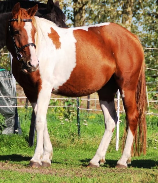 ✨ Driejarige Lewitzer merrie te koop ✨ Omdat onze dochter geen interesse meer heeft in paardrijden, zoeken wij een nieuw thuis voor dit mooie jonge merrie. Ze is levendig en nieuwsgierig, maar houdt ook van knuffelen. Vanwege haar leeftijd is ze nog geen puur kinderpony, maar ze kent het omgaan met kinderen. Ze heeft wel een klein, pony-typisch koppig karakter en moet nog veel leren. Gegevens & opleidingsniveau: - Leeftijd: 3 jaar - Kleur: vos-schecke - Stockmaat: ongeveer 1,44 m (achter licht iets overbouwd) - Tot nu toe slechts licht aangezadeld; longeeruitrusting, pad en bit kent ze - Wordt daarom als onrijp verkocht - Stalling: gemengde groep van merries, paddock met weide-tenten, het hele jaar buiten - Regelmatig gevaccineerd en hoefverzorging - Probleemloos trailer-rijden Afstamming: Moeder: Princess Mabel (v. Pit / Peter I; Urban) Vader: Granit (Grandy, Bundessiegerhengst x St. Pr. Giny van Shamani) Beide ouders kunnen bij ons op de boerderij worden bekeken. Wie interesse heeft om deze charmante jonge merrie te begeleiden, is van harte uitgenodigd om langs te komen, haar te leren kennen – en meteen verliefd te worden. Informatie & vragen graag telefonisch of via WhatsApp: 0176 – 78879276