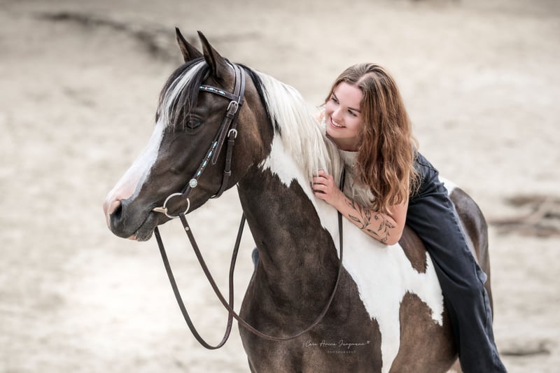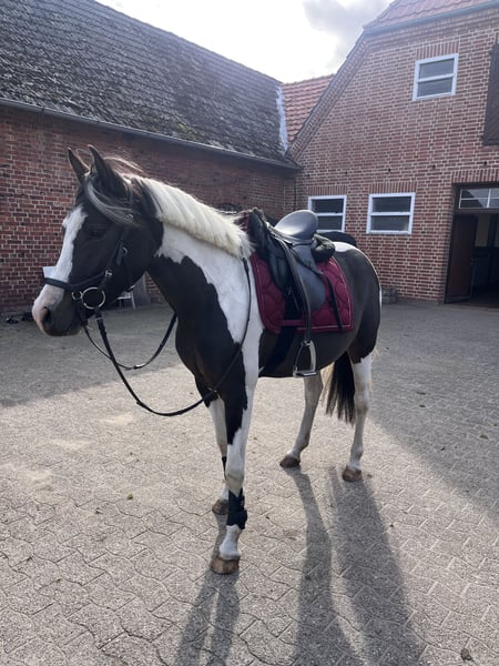 Zum Verkauf steht eine 5-jährige Lewitzer Stute, die mit ihrem lieben Charakter absolut zu überzeugen weiß. Amaya ist super brav im Umgang, kennt die täglichen Abläufe und zeigt sich stets freundlich und unkompliziert. Egal ob Trecker, alleine Anhänger fahren oder im täglichen Handling – ein echtes Verlasspony, was immer gefallen will. Sie war bereits auf Außentrainings, kennt den Geländeplatz, Abspritzen, kleinere Sprünge unter dem Reiter, Freispringen und geht auch an der Longe bereits mit unerfahrenen Reitern brav ihre Runden. Auch den Trubel des Abreiteplatzes hat sie mit Bravour gemeistert und sich nicht von anderen Pferden irritieren lassen. Dieses Pony ist ein echter Rohdiamant und bringt alles mit, um weiter gefördert zu werden. Ideal für jemanden, der sich sein Pony selbst ausbilden will. Dennoch aufgrund des Alters und Ausbildungsstandes nichts für reine Anfänger! Viel Potenzial für Freizeit/Sport Mit einer Größe von 1.46cm ideal im Maß und auch aufgrund ihrer Abstammung (Shawan x Rondo) und Farbgenetik sehr interessant für die Zucht (kann nur bunte Fohlen machen!) Ich gebe sie nur schweren Herzens aufgrund von privaten Veränderungen ab und auch nur wenn es zu 100% passt. Sie ist im Offenstall groß geworden und das würde ich mir auch weiterhin für sie wünschen. Weitere Fotos und Videos können gerne bei ernsthaftem Interesse zugeschickt werden.