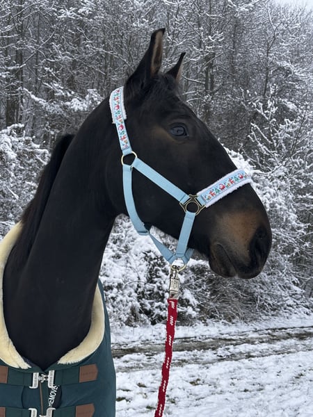 * Name: Ubul (Rufname: Flocke) * Rasse: Nonius x Lipizzaner * Geboren: 15.07.2018 (7 Jahre) * Stockmaß: ca. 1,62 m * Farbe: Schwarz mit Rotstich in der Mähne (bleicht im Sommer deutlich ins Braun aus) * Barhuf * Ranghoch Flocke wurde von mir gemeinsam mit meiner Trainerin vierjährig schonend angeritten und kontinuierlich weiter ausgebildet. Aktuell wurde er bis zu den Piaffe-Anfängen gearbeitet und auch mit Kandare geritten (Piaffe selbstverständlich noch im Aufbau). Beherrscht Seitengänge im Schritt und Trab. Reitvideos sende ich bei ernsthaftem Interesse gerne zu. Er ist ein arbeitsfreudiges, intelligentes Pferd mit viel Go und möchte seinem Menschen gefallen. Gleichzeitig ist er kein Anfänger- oder Kinderpferd. Flocke braucht eine erfahrene, konsequente Bezugsperson mit klarer Führung – bekommt er diese, zeigt er sich loyal, motiviert und sehr kooperativ. Charakterlich ist er extrem menschenbezogen – fast wie ein kleiner Hund. Er sucht sich „seinen“ Menschen aus und baut dann eine sehr enge Bindung auf. Hat man sein Vertrauen gewonnen, geht er mit einem durch dick und dünn. Neben der klassischen Dressur wurde er auch im Bereich Working Equitation gefördert. Bei mehreren Kursen zeigte er Talent und viel Freude an der Arbeit. Durch seinen Lipizzaner-Anteil bringt er außerdem beste Voraussetzungen für die klassische Dressur mit. Er wurde außerdem angesprungen und macht das brav mit – somit ist er ein kleiner Allrounder. Als Jungpferd wurde er zudem zweispännig eingefahren. Flocke ist seit Beginn barhuf und verfügt über sehr gutes, stabiles Hufmaterial. Auch bei der Hufbearbeitung ist er inzwischen sehr brav. Aufgrund mehrerer Umzüge und einer kürzlich überstandenen Erkrankung ist Flocke aktuell nicht im Training. Ein Probereiten ist daher momentan nicht möglich. Er ist inzwischen vollständig gesund und bereit, nun behutsam wieder aufgebaut zu werden. Details dazu gerne persönlich. Beim Verladen zeigt er sich derzeit etwas stur – Angst vor dem Hänger hat er jedoch nicht. Mit etwas Übung lässt sich das sicher gut wieder festigen. Beim Fahren selber ist er super brav. Er kennt perse Gruppenhaltung und die Box über die Nacht. Bzgl. gemischter Herde wäre ich eher vorsichtig - könnte mir eher eine kleine Wallachherde für ihn vorstellen. Für meinen Buben wünsche ich mir einen absoluten Bestplatz – Platz vor Preis. Da ich ihm einen weiteren Umzug ersparen möchte suche ich ehestmöglich ein neues Zuhause. 📍 Standort: Nähe Schwechat 👀 Besichtigung: jederzeit nach Absprache möglich Equipment kann gerne mit übernommen werden, darunter: * diverse Winterdecken (max. 1–2 Jahre alt) * Unterdecken (50 g, 100 g, 200 g, 300 g) * 2 × Regendecken (0 g) * 100 g Decke * 2 × 200 g Decken (eine davon neu) * Henning Dressursattel (kürzlich gebraucht gekauft - sehr guter Zustand) * Mattes Sattelpad & Mattes Sattelgurt * diverse Schabracken * weiteres Zubehör 📞 Kontakt: +43 676 86118147 WhatsApp oder telefonisch jederzeit
