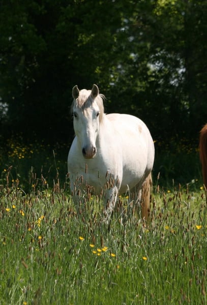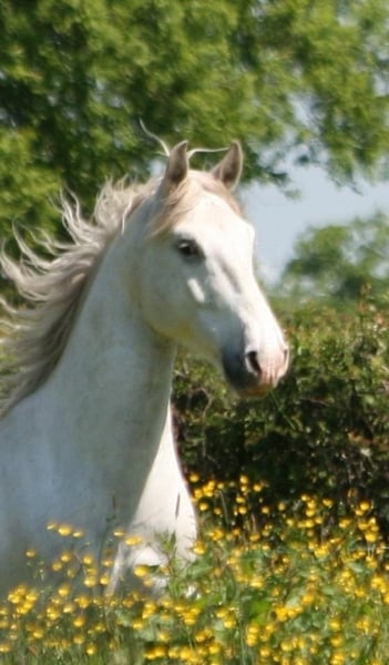Madrigal est un hongre de 10 ans bien expérimenté en dressage. Il a trois allures correctes, au trot il développe une propulsion importante. Son niveau est confirmé au dessus de la base. Madrigal est monté avec les jambes et la siège, il réagit sur des aides fines. Il fait épaule en dedans, tous les mouvements latéraux, pas -galop etc. Il vit actuellement en troupeau d'hongres toute l'année dehors. Il est habitué de travailler dans la manège et il sort avec plaisir dehors en plusieurs ou tout seul. Son charactère est plutôt calme, il est très proche de l'homme. Il monte sans difficulté dans le van et il n'y a pas de souci avec le maréchal.