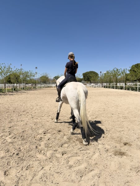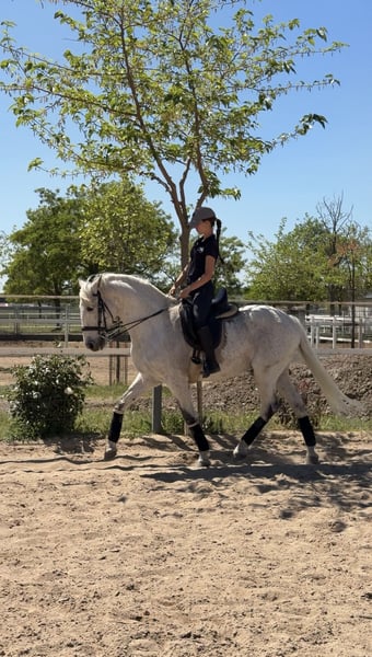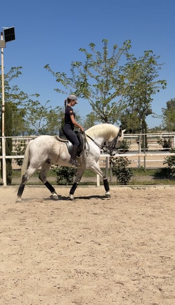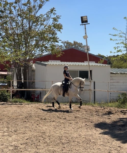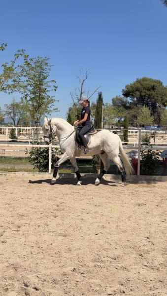 Se vende caballo cruzado con lusitano, 17 años, con un carácter excepcional: noble, seguro y con la energía justa para disfrutarlo tanto en pista como fuera de ella. 🔹 Altura: 1,57 m a la cruz 🔹 Capa: Tordo 🔹 Carácter: Muy bueno, equilibrado y fiable Ideal para jinetes que quieran aprender, progresar y competir con seguridad. Nivel de doma: ✔️ Apoyos en los 3 aires ✔️ Cesiones en los 3 aires ✔️ Espalda adentro ✔️ Cara al muro ✔️ Piruetas al paso y al galope ✔️ Iniciado en cambios de pie Experiencia en competición: Ha competido hasta Clásica I (2o puesto) Subcampeón de Madrid en Infantiles En pista es un caballo que no duda, va contigo y responde siempre. En el campo es igual de fiable: tranquilo, no asustadizo y muy agradable. Más información 616556223.