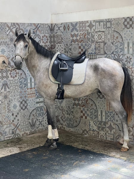 Mein Name ist Sibelius und werde bald 4 Jahre alt. Ich bin hier im Gestüt in Portugal geboren, im Herdenverband in Freiheit ( bei gleichzeitig bester Betreuung durch meine Menschen ) aufgewachsen und habe schon meine ersten Erfahrungen unter dem Sattel gemacht. Jetzt suche ich "meinen Menschen" an dessen Seite ich treu durch alle gemeinsamen künftigen Erlebnisse gehen werde. Ich bin nicht groß - aber es gibt ja auch Menschen die ein Pferd in einer kompakten Größe suchen - meine wahre Größe ist mein treuer Charakter. Ich bin "nur" grau und werde mal ein Schimmel sein. Meine Mama sagt: "ein gutes Pferd hat keine Farbe" und ich strenge mich deshalb doppelt an, denn ich will das beste Pferd für Dich sein. Denn eines ist Sicher: ich bin ein echter Lusitano mit allen Vorzügen dieser Rasse und das Wichtigste: ich bin absolut gesund und mit einwandfreien Röntgenbildern. Ich habe von meinen Eltern aber auch andere tolle Sachen geerbt: Mein Körperbau ist harmonisch und perfekt und ich bin mit tollen elastischen Gängen gesegnet worden. Magst Du mich kennen lernen, damit ich Dir zeigen kann was in mir steckt? Dann kommen wir Zwei ganz groß raus und zeigen allen, dass auch kleine Leute großes erreichen können.