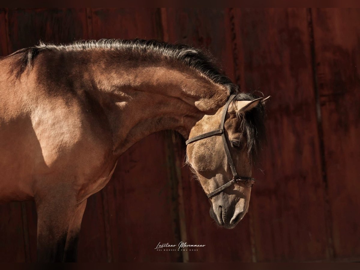 Lusitano in special color – 1.70 m – A real eye-catcher with a gentle nature Features: - Breed: Lusitano - Gender: Gelding - Year of Birth: 2022 - Color: Buckskin - Height: 170 cm This extraordinary three-year-old Lusitano gelding captivates not only with his rare special color (Buckskin) but especially with his impressive height of 1.70 m, making him a true standout – whether in the arena, on the trails, or perhaps even at a few competitions in the future. He displays a very calm, people-oriented, and balanced character. Currently, he is being calmly introduced to lunging – with plenty of time and patience for healthy development. With his charming nature and appearance, he has everything it takes to become a loyal leisure partner in the future – whether for relaxed rides, working equitation, or perhaps as a highlight at a small competition or shows. An exceptional horse for those seeking something special. I can gladly provide more pictures and videos upon request.