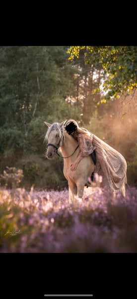 Schweren Herzens suche ich für meinen 4 jährigen Wallach ein 5 Sterne zuhause. Er ist ein sensibel, gut erzogen & ein Pferd mit komplett bekannter Vorgeschichte. Keine Katze im Sack. Ich kenne ihn seit er 7 Wochen alt ist und habe ihn selbst mit meiner Trainerin zusammen eingeritten. Er ist ein „Ein-Frau-Pferd“, aber ich kann ihn mir sehr gut als Familienpferd vorstellen. Er liebt Kinder und ist extrem vorsichtig mit ihnen & hat viel Geduld. Hunde kennt er auch. Er zeigt sich sehr lernwillig und zuverlässig. Gewinnt man sein Vertrauen, geht er für seinen Menschen durchs Feuer. Bisher ist er in allen Gangarten, bei jedem Wetter geritten. Sowohl in Halle, auf dem Platz und im Gelände. Im Urlaub war er mit und hat sich ungewöhnlich cool gezeigt. Er hat mich durch tiefe Wasserbäche getragen und hat sehr gutes Grundvertrauen, aber braucht einen Moment, um sich auf seinen Menschen einzustellen. Als Anfängerpferd würde ich ihn nicht beschreiben, da er ein Spanier ist und gefordert werden möchte. Nur im Kreis reiten ist kein Problem, aber auf Dauer zu langweilig. Daher suche ich jemanden, der durchsetzungsfähig ist und seinem Roten Faden treu bleibt. Denn das ist was Sol an Sicherheit braucht. Wer ihm diese liebevolle Führung bieten kann, hat einen besten Freund fürs Leben. Sol hat ein sehr gutes Sozialverhalten und kann sowohl mit Stuten, als auch Wallachen stehen. Allerdings keine Boxenhaltung, da ich mir das nicht als Leben für ihn wünsche. Nachts Box und tagsüber komplett raus, wäre aber ok. Er wird nie kopflos und ist sehr treu. Vollständiger Impfstatus ist vorhanden (Tetanus), ist regelmäßig Entwurmt, hat 1x im Jahr Zähne gemacht bekommen, alle 7-8 Wochen Hufschmied (Barhuf) und alle 8 Wochen Physio/Osteopathie. Ca 1,52m groß. Zusätzlich hat Sol das Champagner Gen- weshalb er eine außergewöhnliche Farbe hat. Grund des Verkaufs ist Aufgabe des Reitsportes. Es liegt bestimmt nicht an ihm. Bei Interesse gerne mehr Informationen, per DM oder Telefonat. Er kommt nur in ein 5 Sterne zuhause. Platz vor Preis. Er steht aktuell in Melle