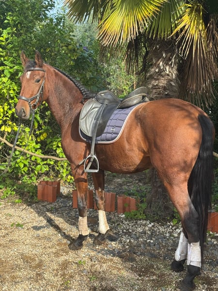 Vielseitiger Lusitano-Wallach mit Qualität für Working Equitation & mehr ⸻ Rasse: Lusitano Geschlecht: Wallach Geburtsjahr: 2021 Farbe: Brauner Stockmaß: ca. 1,60m (wächst wahrscheinlich noch 1-2 Zentimeter) ⸻ ROMEU ist ein moderner, talentierter Allrounder, der durch seine Vielseitigkeit, Rittigkeit und guter Abstammung überzeugt. Ein Pferd, das sowohl im Sport, als auch als verlässlicher Partner im Alltag punkten wird. ⸻ 🏇 Ausbildung & Reiteigenschaften ✔️ Sicher geritten in Schritt, Trab & Galopp ✔️ Seitwärtsgänge bereits vorhanden ✔️ Sehr sitzbequem & leichtrittig ✔️ Leichter, gut ausbalancierter Galopp ✔️ Gute, klare Grundgangarten ✔️ Brav beim Ausreiten ✔️ Guter Sprung – macht auch über Hindernisse Spaß ✔️ Kennt Working Equitation Hindernisse ➡️ Ein echtes Multitalent für Reiter, die Abwechslung lieben. ⸻ 🎯 Einsatzmöglichkeiten 🔹 Working Equitation 🔹 Klassische Dressurarbeit 🔹 Freizeit & Gelände 🔹 Perspektivisch vielseitig weiter ausbildbar ➡️ Allrounder mit Nervenstärke ⸻ 🧬 Abstammung ✨ Mutter: NUVEM CASTANHA • gekört mit über 70 Punkten • steht für Qualität, Rittigkeit und korrektes Fundament ✨ Vater: PIAFE • bewährter Hengst mit rund 50 Nachkommen • bekannt für Charakter, Leistungsbereitschaft & gute Bewegungen ⸻ 💎 Charakter Romeu überzeugt durch: 🤍 angenehmes, kooperatives Wesen 🧠 schnelle Auffassungsgabe 🔥 Motivation bei gleichzeitig guter Nervenstärke ➡️ Ein Pferd, das seinem Reiter Sicherheit und Freude gibt. ⸻ 🌟 Fazit ROMEU ist ein ehrliches, talentiertes und vielseitiges Pferd mit: ✅ sehr guter Abstammung ✅ solider Ausbildung ✅ komfortablem Sitzgefühl ✅ Potenzial für Working Equitation & mehr ⸻ 📞 Kontakt & Besichtigung ROMEU kann nach Vereinbarung besichtigt und probegeritten werden. Ich freue mich auf ernsthafte Anfragen und nehme mir gerne Zeit für ein persönliches Gespräch.