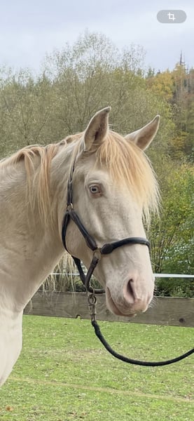 5 jähriger Perlino mit Dun sucht ein neues zuhause. Ich gebe ihn nur ab, weil ich ihn nicht in der Stutengruppe halten kann, da er deckt. Er hat gute Grundgangarten mit einer sehr schönen großen Galoppade, ist einfach zu reiten in der Halle und ihm Gelände und macht einfach richtig Spaß. Extrem menschenbezogen und gut auszubilden, ist er ein absolutes Traumpferd. Er ist solide geritten, hat aber noch nicht viel gemacht und muss weiter ausgebildet werden.