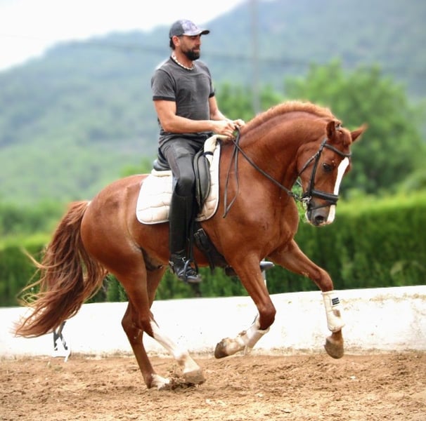 A beautiful Andalusian gelding in the rarer chestnut color is looking for a FOR EVER HOME. DALI embodies almost everything that makes a true Spanish dream horse. He has a very nice top line with a great neck, is of baroque type, and is an eye-catching presence that immediately stands out. He has been gently ridden in all three gaits with a water snaffle and has primarily been out in the field. Consequently, he now brings a lot of experience in outdoor riding. His very friendly and open character makes the hearts of Spanish horse lovers soar. He is truly well-behaved and reliable under the rider. He wants to find his FOR EVER HOME and become a loyal partner for life! The handsome chestnut has a Spanish equine passport without proof of lineage. If this beautiful gentleman appeals to you, please contact me with your phone number so I can get in touch with you as soon as possible.