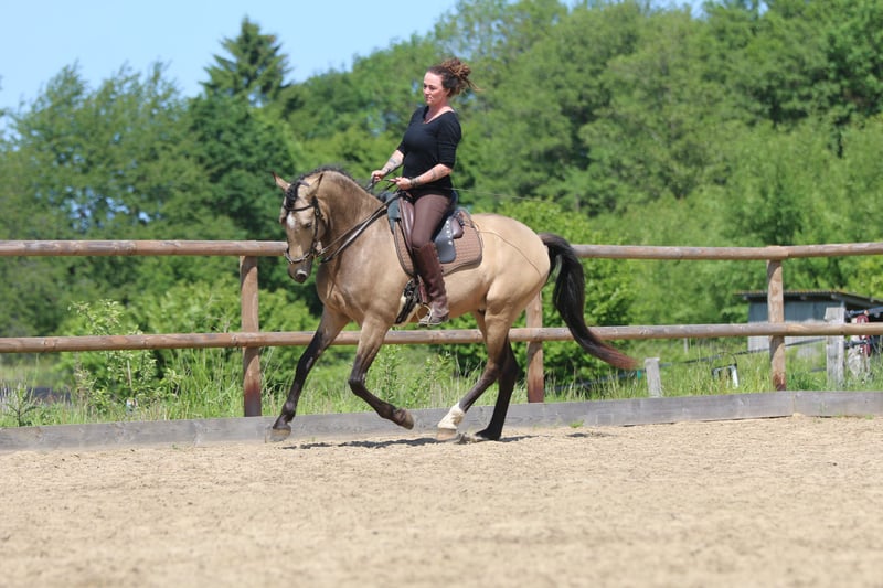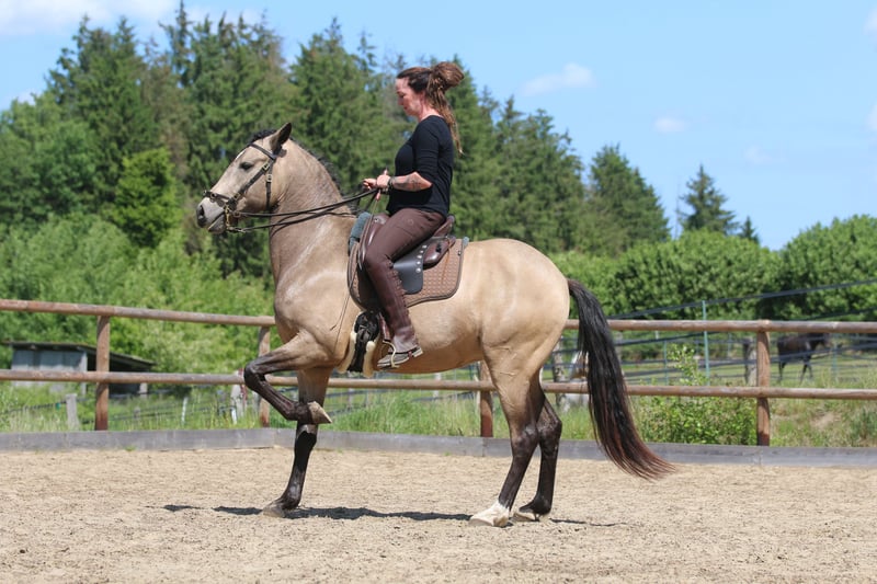 Quantico ist ein absolutes Verlasspferd in einfach jeder Situation. Er ist immer ehrlich und anständig. Er ist sehr rittig und auch an der zirzensik hat er Spaß! Kompliment, Ablegen, spanischer Schritt, Schulhalt, Levade, Steigen, (Piaffe und Passage begonnen) Er hat Spaß an der Dressur und auch Rinderarbeit und Working Equitation begeistern ihn. Er geht super lieb ins Gelände, ist mit anderen Pferden sehr umgänglich. Er ist ein super Allrounder und absolut unkompliziert. Er ist auf verschiedenen Zäumungen geritten kennt sowohl Gebiss als auch gebisslos. Er wird nur in allerbeste und fördernde Hände abgegeben. Er ist mein privat Pferd und geht nur an einen Bestplatz!
