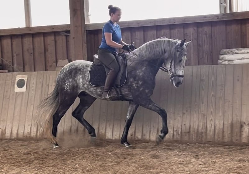 Verkaufe eleganten Lusitanos-Wallach – Rappschimmel, geb. 2020 Zum Verkauf steht ein wunderschöner Lusitanos-Wallach, geboren im Jahr 2020. Mit seinem beeindruckenden Stockmaß von 168 cm vereint er klassische Eleganz und athletische Qualität. Der Rappschimmel besticht durch sein edles Erscheinungsbild und seine ausdrucksstarke Präsenz. Vielseitige Grundlagen sing gelegt: Gelände, Handpferdereiten, Freiarbeit, Gymnastiksprünge, workinghindernisse, Seitengänge, erste Piaffetritte begonnen. Er ist perfekt erzogen und super freundlich, auch in der Herde. Röntgenbilder vorhanden. Der Wallach ist gesund, gepflegt und bereit für neue Herausforderungen – sei es im Freizeitbereich, der Dressur oder im working Equitation Sport. Bei Interesse und für weitere Informationen stehe ich Ihnen gerne zur Verfügung. Besichtigung und Probereiten nach Vereinbarung möglich.