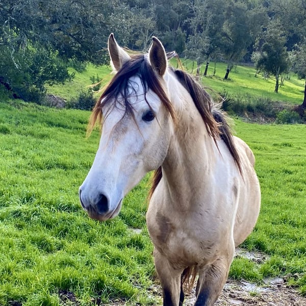 Orion VA is a charismatic 7 year old APSL Lusitano gelding. Wherever he goes, he’ll impress the people around him, with his expressive appearance, his golden glow, long dark mane and tail. He is a baroque type with a beautiful compact conformation. He is very well behaved, confident and calm, he has character, but he is super honest and fair. He loves to work with you, he loves the attention and he is full of energy. He has three very correct and balanced gaits, a wide walk, a comfortable trot and a super balanced uphill canter. Working with him is a true pleasure, he is very sensitive and responsive to the aids of the seat and legs, super light in the hands, just the weight of the reins in your hand. . He is ridden on a double broken water snaffle and goes barefoot everywhere without any problems. He is the ideal partner for a fine amateur rider. He does all lateral work, shoulder in and out, walk-canter transitions, counter canter, starting flying changes, starting exercises focused on higher school collection. If you are looking for a versatile partner, with talent for classical dressage and working equitation, he is the horse for you. About VA Lusitanos: We breed our horses with care, the foals are born in the field, grow up in the herd, on hilly terrain, with trees, bushes, open parts, rivers, and a little lake, so they get used and confident with all different types of surroundings. They always have good quality hay and their portion of grains and minerals available. They learn a lot of good social behavior from each other, their moms and aunties in the herd, besides social interaction with horses, daily interaction with humans is also an important part of their education. As we have very frequent interaction with our horses, they develop a deep trust in humans, which facilitates all of their interactions with both humans and horses. All of our customers confirm over and over again that our Lusitanos excel in confidence, calmness and ease of handling in all situations. Since we believe that the Lusitano horse needs time to mature and develop their bones and muscular structure, we start evaluating each individual VA Lusitano when they are 4 years old. Orion started his training when he was 4,5 years old, first on the lunge and in hand and since he is 5 years old also under the saddle. We have different VA Lusitanos available in different age groups. Green horses, trained in hand, under the saddle. You can find a full overview of our lusitanos on our website. We also have high quality guest houses available for our customers. When you buy a horse from us, your stay in one of our luxury guest houses is for free (max 5 nights) https://www.quintavaledeagua.com