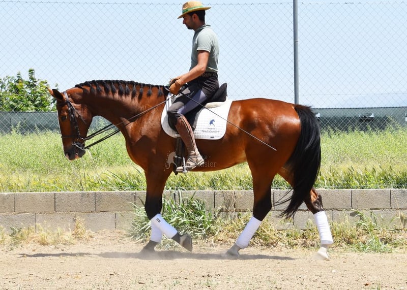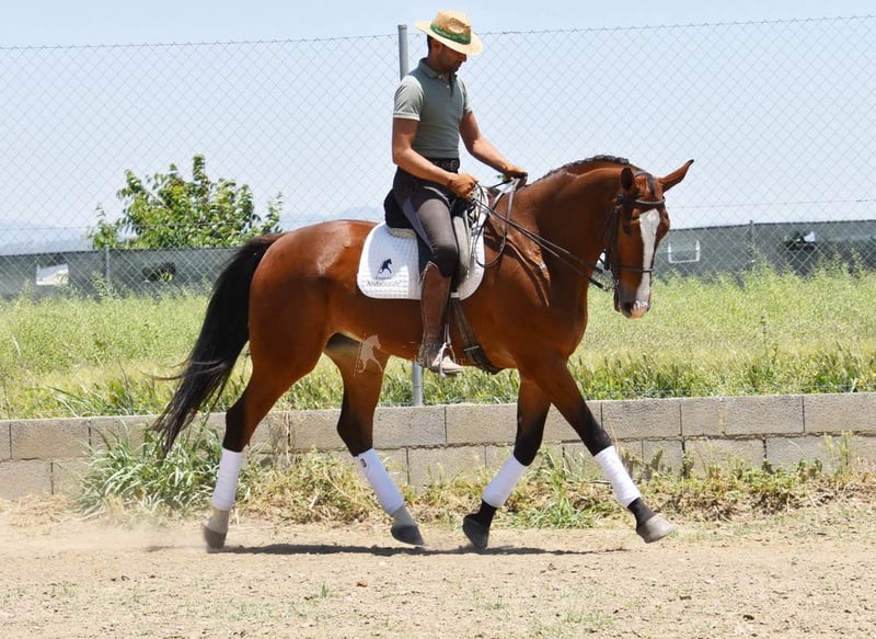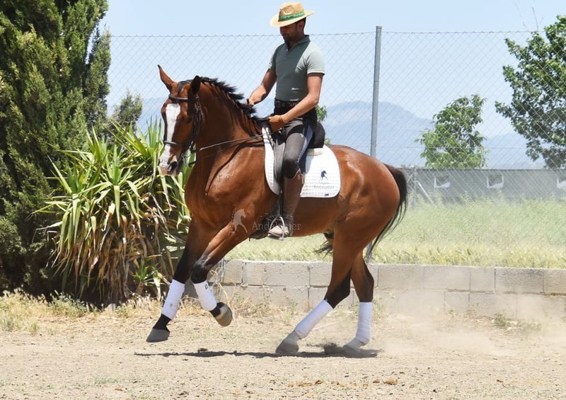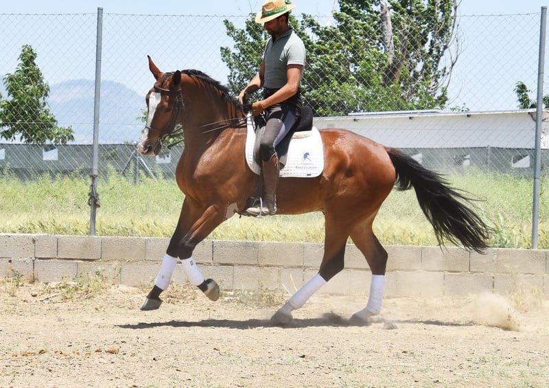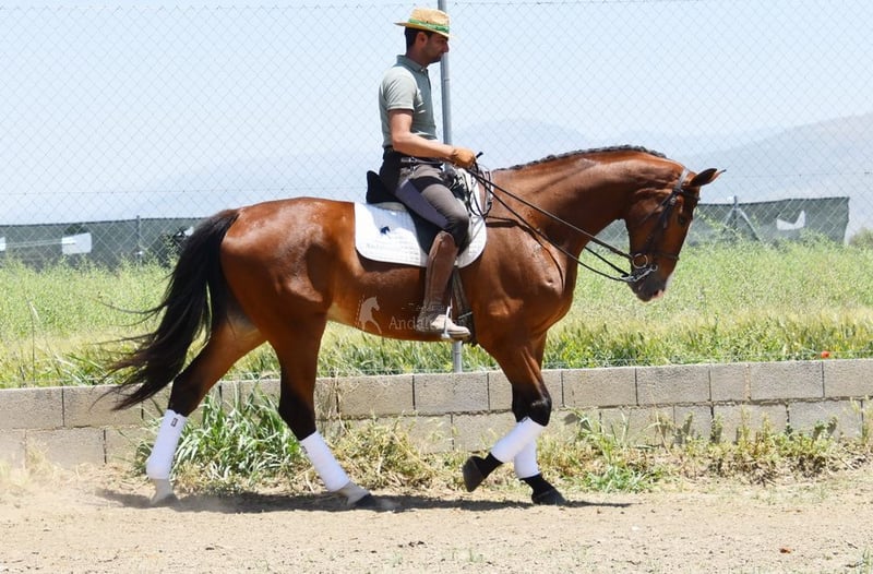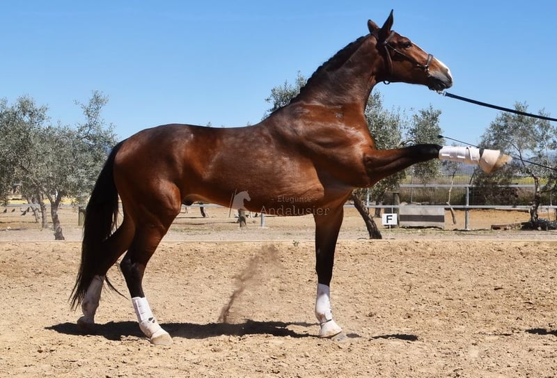 piękny charakter, ujeżdżony w podstawowych chodach, chody boczne, zewnętrzny kłus, lotne zmiany, hiszpański chód, piaff, pasaż, zaczynał od piruetów, bardzo duży, dobry ruch www.elegante-andalusier.com