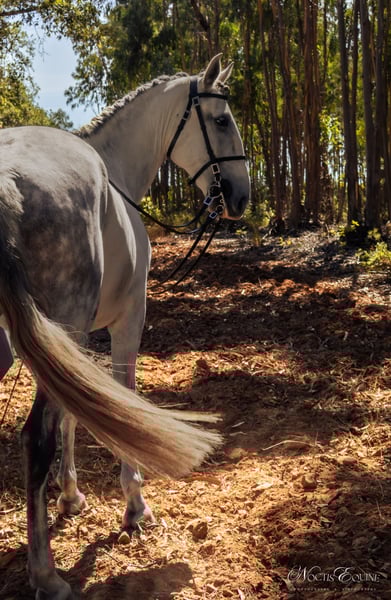 Oberon VA is the friendliest and most cuddly horse ever, with a heart of gold. He loves attention and hanging out with you. He is always searching for ways to please you, always offering to give his best for you. He is eager to learn and has a good amount of energy. His has three good and comfortable gaits, a natural talent for collection. He knows the lateral exercises, counter canter, walk-canter transitions, starting flying changes, starting piaffe. Oberon VA is a very versatile horse, ideal for classical dressage, working equitation and trail rides including some jumps. The ideal horse for someone who is looking for a true friend to have fun with every day, he is always in a good mood. An easy horse to ride, comfortable gaits, he will forgive your minor errors and he’ll still give all his best. A good family horse for a (teenager) amateur rider that wants to improve his or her riding skills together with this sweetheart. About VA Lusitanos: We breed our horses with care, the foals are born in the field, grow up in the herd, on hilly terrain, with trees, bushes, open parts, rivers, and a little lake, so they get used and confident with all different types of surroundings. They always have good quality hay and their portion of grains and minerals available. They learn a lot of good social behavior from each other, their moms and aunties in the herd, besides social interaction with horses, daily interaction with humans is also an important part of their education. As we have very frequent interaction with our horses, they develop a deep trust in humans, which facilitates all of their interactions with both humans and horses. All of our customers confirm over and over again that our Lusitanos excel in confidence, calmness and ease of handling in all situations. Since we believe that the Lusitano horse needs time to mature and develop their bones and muscular structure, we start evaluating each individual VA Lusitano when they are 4 years old. Oberon VA started his training when he was 4,5 years old, first on the lunge and in hand and since he is 5 years old also under the saddle. We have different VA Lusitanos available in different age groups. Green horses, trained in hand, under the saddle. You can find a full overview of our lusitanos on our website. We also have high quality guest houses available for our customers. When you buy a horse from us, your stay in one of our luxury guest houses is for free (max 5 nights) https://www.quintavaledeagua.com