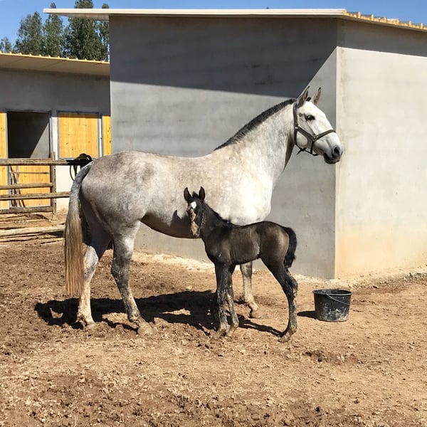 Oberon VA ist das freundlichste und kuscheligste Pferd überhaupt mit einem Herzen aus Gold. Er liebt Aufmerksamkeit und die Zeit mit dir. Er sucht immer nach Wegen, um dich zu erfreuen, und bietet stets sein Bestes für dich an. Er ist lernbegierig und hat eine gute Menge an Energie. Er hat drei gute und bequeme Gangarten, ein natürliches Talent für die Versammlung. Er kennt die seitlichen Übungen, den Gegenkanter, Übergänge vom Schritt zum Galopp, beginnt mit fliegenden Wechseln und mit der Piaffe. Oberon VA ist ein sehr vielseitiges Pferd, ideal für klassische Dressur, Working Equitation und Ausritte, einschließlich einiger Sprünge. Das ideale Pferd für jemanden, der einen wahren Freund sucht, um jeden Tag Spaß zu haben, er ist immer gut gelaunt. Ein einfach zu reitendes Pferd mit bequemen Gangarten, er verzeiht dir kleine Fehler und gibt trotzdem sein Bestes. Ein gutes Familienpferd für einen (Teenager-)Amateurreiter, der seine Reitfähigkeiten zusammen mit diesem Pferd verbessern möchte. Über VA Lusitanos: Wir züchten unsere Pferde mit Sorgfalt, die Fohlen werden im Freien geboren, wachsen in der Herde auf, auf hügeligem Gelände, mit Bäumen, Sträuchern, offenen Flächen, Flüssen und einem kleinen See, sodass sie sich an verschiedene Umgebungen gewöhnen und Vertrauen gewinnen. Sie haben immer qualitativ hochwertiges Heu und ihre Portion an Getreide und Mineralien zur Verfügung. Sie lernen viel gutes Sozialverhalten von einander, ihren Müttern und Tanten in der Herde; neben der sozialen Interaktion mit anderen Pferden ist auch die tägliche Interaktion mit Menschen ein wichtiger Teil ihrer Ausbildung. Da wir sehr häufig mit unseren Pferden interagieren, entwickeln sie ein tiefes Vertrauen zu Menschen, was alle ihre Interaktionen mit Menschen und Pferden erleichtert. Alle unsere Kunden bestätigen immer wieder, dass unsere Lusitanos in Selbstbewusstsein, Gelassenheit und Umgangsfreundlichkeit in allen Situationen herausragen. Da wir glauben, dass das Lusitano-Pferd Zeit benötigt, um zu reifen und ihre Knochen- und Muskelstruktur zu entwickeln, beginnen wir mit der Bewertung jedes einzelnen VA Lusitanos, wenn sie 4 Jahre alt sind. Oberon VA begann seine Ausbildung, als er 4,5 Jahre alt war, zunächst an der Longe und am Hand, und seit er 5 Jahre alt ist, auch unter dem Sattel.