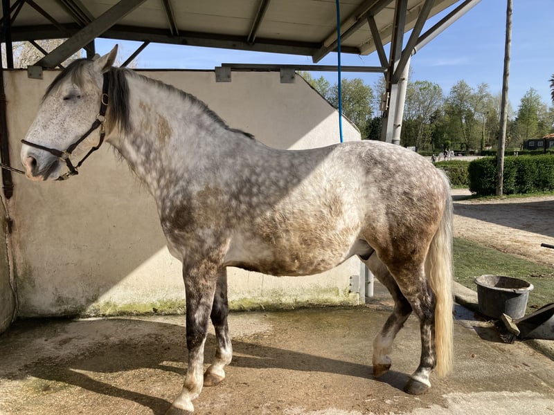 Ein 9-Jähriger Lusitano Mix Freizeit Pferd. Ein Pferd mit sehr viel Charakter und intelligenz. Er ist sehr begabt in Dressur. Hat leider den Nerv nicht dazu. Im allgemeinen findet er geritten werden nicht der Highlight. Er will 24/24 und 365 Tagen mit seiner Artgenossen auf der Weide stehen aber er mag es auch wenn er beschäftigt wird was ihm herausfordert. Er braucht viel Abwechslung. Ausreiten ins Gelände findet er auch toll. Es ist absolut kein Anfänger Pferd und ein Pferd das gefühlvolle Reiterhände braucht und guten Umgang mit Pferde kennt. Weil eine sehr deutliche Linie schwarz/ weiß ist Notwendig bei ihm. Seine Trickkiste ist unendlich. Aber wenn man ihm deutlich wissen lässt wo die Grenze sind und seine Dosis Bewegung und Aufmerksamkeit gibt, ist er wie ein Hund. Er hört auf seinen Namen, weiß ganz genau was er darf, nimmt Kommandos an und versucht auf seiner Art mit dir zu kommunizieren. Ich habe die Hoffnung dass er vielleicht in bessere Hände kommt wie bei mir. Ich habe wenig Gefühl für Bodem Arbeit und Tricks beibringen bin ich auch nicht der Held. Wenn er kein Platz findet in andere Hände bleibt er bei mir, ich kenne ihm jetzt durch und durch. Und er lebt in einem 5-Sterne Haus. Er ist nie krank gewesen, nie gelahmt außer warm und viele Fliegen, das macht ihm wahnsinnig. Jährlich war er beim Zahnarzt, osteopaat, Impfungen, Wurmkur,… Er ist sehr gut gebaut. Steht fast auf den 4 Hufe perfekt, hat nie Eisen gehabt, braucht er auch nicht weil er so schön auf den Hufen steht. Vielleicht ist da jemanden wo er vielleicht besser aufgehoben ist als bei mir. Seinen Sattel (ist im Preis drin) würde ich auch mitgeben, er hat einen sehr breiten Widerrist. Er steht jetzt in Portugal. Ich habe im in de Nierlanden gekauft und hat in Belgien und den Niederlanden gestanden, seit 2 Jahre steht er jetzt in Portugal.