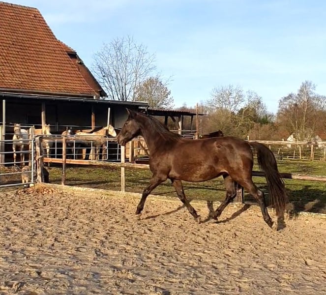 Ich biete eine außergewöhnliche Lusitano Stute in Smoky Black an, die sowohl durch ihre Optik als auch durch ihren erstklassigen Charakter besticht. Ensinada vereint feinste portugiesische Blutlinien mit Rittigkeit und einem absolut ehrlichen Wesen. Sie ist eine direkte Tochter des portugiesischen Olympia Teilnehmer Viheste AR. Eckdaten im Überblick: Rasse: Lusitano (mit vollen Papieren und blauem Buch) Farbe: Seltenes Smoky Black (creme, schwarz) Größe: 1,57 m Geburtsdatum: 2009 Zustand: Unverbraucht, gesund und topfit Eignung: Dressur, Working Equitation, gehobene Freizeit, Zucht Besondere Merkmale: Herausragende Gänge: Sie verfügt über drei sehr gute Grundgangarten, sehr schön zu sitzen, Elastizität und der rassetypischen Versammlungsbereitschaft. Interieur: Eine absolut brave und verlässliche Partnerin. Sie zeigt sich im Umgang sowie unter dem Sattel stets unkompliziert und lernwillig. Geländesicher: Egal ob alleine oder in der Gruppe Ensinada ist im Gelände eine „Lebensversicherung“ und zeigt sich unerschrocken gegenüber Außenreizen. Zuchterfahrung: Die Stute hat bereits mehrere erstklassige Fohlen zur Welt gebracht und sich als instinktsichere, fürsorgliche Mutter bewiesen. Aufgrund ihrer sehr guten Abstammung und der Sonderfarbe ist sie eine Bereicherung für jede qualitätsvolle Zucht. Fazit: Diese Stute ist ein Juwel für Reiter, die ein schönes, unverbrauchtes Pferd für die tägliche Arbeit oder entspannte Ausritte suchen, aber auch für Züchter, die Wert auf Fundament, Gangqualität und Genetik legen. Abgabe nur wegen Bestandsreduzierung. Ensinada sucht ausschließlich ein 5* Zuhause in artgerechter Haltung.