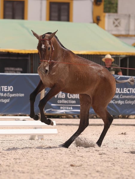 Nombre: Uliia Raza: Lusitano de pura raza (PSL) Sexo: Potranca Edad: 1 año y 8 meses Altura aproximada: 1,55 m Fecha de nacimiento: 04/10/2022 Registro: APSL — NIN 392573 Color: Gris Ubicación: Coimbra, Portugal Pedigrí y genética Uliia es hija de Lord Plus (RR 4★) del Stud Dressage Plus, con 74,5 puntos, probado en Doma Clásica. La línea paterna incluye a Escorial (78 pts) y Elite Plus (76 pts). La línea materna incluye a Açúcar do Pinheiro (74,5 pts) y Princesa (71 pts). Dressage Plus es un criador reconocido internacionalmente, conocido por su selección de calidad y éxito en competiciones de alto nivel, incluyendo la cría de Zonik Plus, Campeón del Mundo y Europeo de Doma. Esto refuerza el valor genético y el potencial futuro de Uliia. Descripción técnica • Conformación correcta y equilibrada • Buena amplitud y elasticidad en el movimiento • Temperamento funcional, curioso y fácil de manejar • Criada en exterior, sana, sin vicios • Excelente potencial para Doma o cría • Altura actual aprox. 1,55 m, en crecimiento Documentación • Registro completo en APSL • Pedigrí verificado • Microchip y vacunas al día