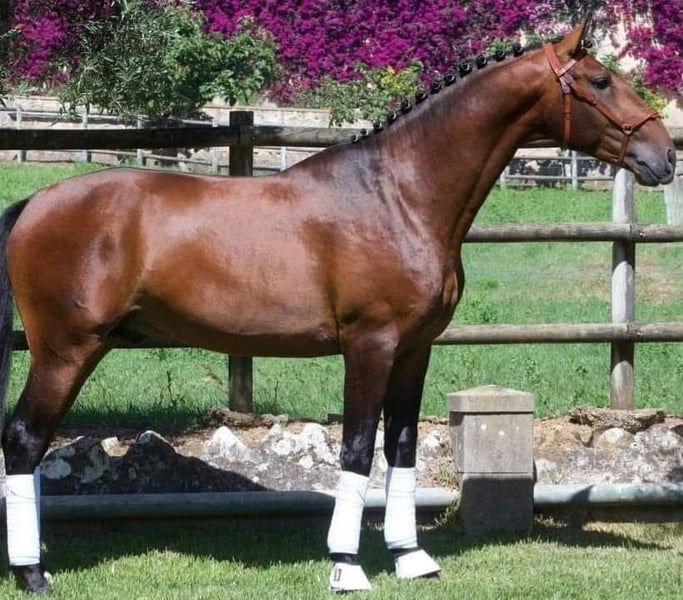Lusitano Filly with Outstanding Pedigree – Daughter of Grand Prix Stallion Lord Plus Name: Viçosa Breed: Lusitano Sex: Filly Year of Birth: 2025 Location: Belgium Registration: Fully registered with APSL Piro status: Piroplasmosis negative Expected Height: Approx. 1.60 m ⸻ Viçosa is a high-potential Lusitano filly with an exceptional pedigree, combining proven sport performance and strong breeding value. She is sired by Lord Plus, an established Grand Prix stallion and son of the Olympic stallion Escorial, known for producing top-level dressage horses. Her dam, Bemparecida, is a proven broodmare with multiple approved offspring. She is also the dam of Iris, Champion of Portugal in Cascais, multi-gold medal winner and APSL-approved with over 80 points. Viçosa already shows impressive movement with excellent rhythm, elasticity, and natural suspension. Her correct conformation and expressive gaits make her a serious candidate for dressage, breeding, and model & movement competitions. Being born in Belgium, she is piroplasmosis-negative, which makes her ideal for international sport or export. ⸻ ✅ Key Features: • Sired by Lord Plus (Grand Prix) – son of Olympic stallion Escorial • Out of Bemparecida, dam of several approved and medal-winning offspring • Piro-negative – born in Belgium • Naturally talented with uphill movement, cadence, and swing • Perfect prospect for sport, breeding, and APSL approvals ⸻ For more information, videos, or a visit, feel free to get in touch. Viçosa is a rare opportunity to invest in a young Lusitano with elite bloodlines and sport potential from day one.