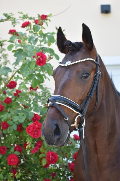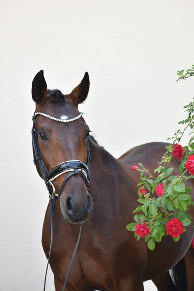 Rosa da Hermida est une jument lusitanienne sortie tout droit d'un conte de fées. Magnifique, pétillante - ronde comme un ballon, elle offre déjà à son cavalier, à seulement 4 ans, une sensation d'équitation fantastique. Grâce à son célèbre grand-père « Rubi », elle est certainement dotée de trois excellentes allures de base, faisant battre le cœur de chaque cavalier. Elle est très agréable à monter et légère dans la main. Elle a été délicatement débourrée et est actuellement en cours de formation polyvalente avec beaucoup de sensibilité. Sur le plan du caractère, cette jument est inégalable et est un véritable trésor à manipuler. Il n'y a aucune difficulté dans le quotidien - promenade au pré avec différents compagnons, douche, maréchal-ferrant, transport en van, attache, sorties en extérieur - pour Rosa, tout cela est une évidence. Un cheval de rêve qui est proposé à la vente uniquement en raison de sa petite taille. - Sans Piro.