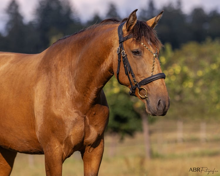 Zum Verkauf steht eine 5-jährige Lusitano-Stute aus einer hochwertigen Zuchtlinie. Die Stute wurde sorgfältig und mit viel Geduld an das Reiten herangeführt. Leider zeigte sich, dass sie sich trotz professioneller Begleitung, verschiedener Trainingsansätze und viel Zeit, unter dem Sattel nicht wohlfühlt. Aus diesem Grund wird sie nicht als Reitpferd angeboten. Abseits des Reitens zeigt Queiroga, viel Motivation und Engagement in der Hand- und Freiarbeit. Mit der Stute kann man lange, entspannte Spaziergänge alleine oder auch in der Gruppe unternehmen. Als Handpferd geht sie alle drei Gangarten sicher ins Gelände. Außerdem kennt sie die Führanlage und ist vom Wesen her unerschrocken, da sie Hunde, Kinder und Traktoren im Hof-Alltag kennen gelernt hat. Die Stute ist unkompliziert in der Haltung. Aktuell steht sie in einer kleinen Stutenherde im Offenstall, kennt aber auch die Boxenhaltung. Wir wünschen uns für sie einen sehr guten Platz, idealerweise einen Züchter, zur Zucht oder alternativ bei einer Privatperson, die ein gesundes, wertvolles Pferd ohne Reitambitionen sucht. Die Stute wurde aufgrund ihres Verhaltens unter dem Sattel komplett vom Tierarzt durchgecheckt. Auf Anfrage können gerne weitere Informationen gegeben werden. Queiroga ist kein Notverkauf - Platz vor Preis. Weitere Informationen gerne auf Anfrage.