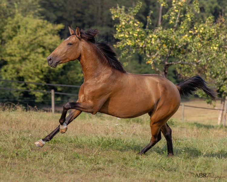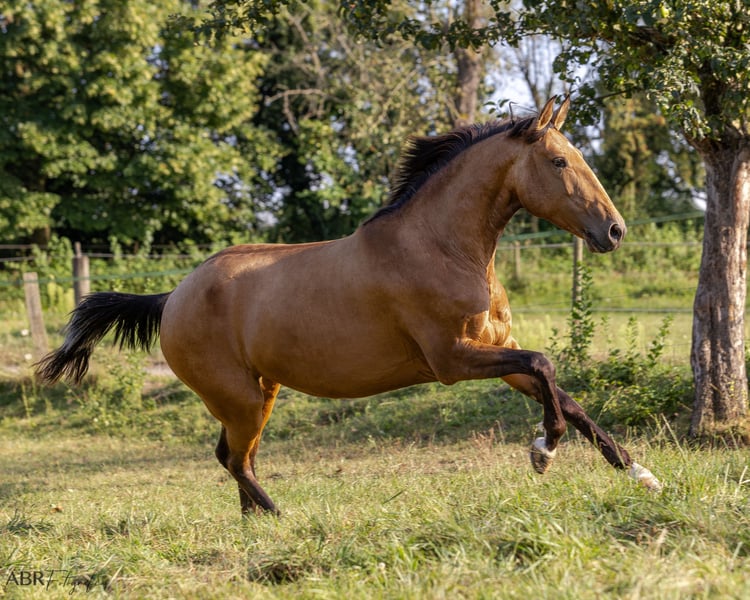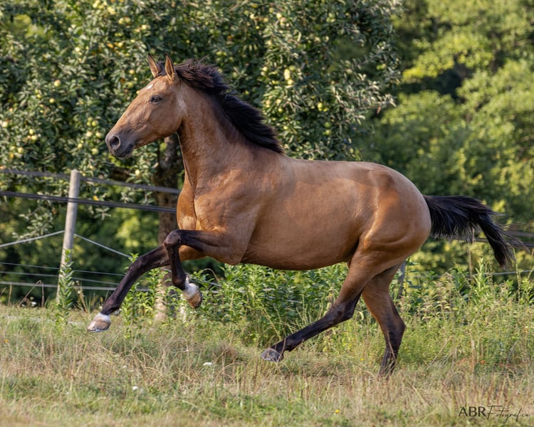 For sale is a 5-year-old Lusitano mare from a high-quality bloodline. The mare has been carefully and patiently introduced to riding. Unfortunately, despite professional guidance, various training approaches, and plenty of time, she does not feel comfortable under saddle. Therefore, she is not offered as a riding horse. Outside of riding, Queiroga demonstrates great motivation and engagement in groundwork and free-moving exercises. She is suitable for long, relaxed walks alone or in a group. As a ground companion, she confidently walks all three gaits in the field. She is also familiar with the lunging arena and has a fearless nature, having experienced dogs, children, and tractors in her daily environment. The mare is uncomplicated in her management. Currently, she is kept in a small herd of mares in an open stable, but she is also accustomed to box stall housing. We are seeking a very good home for her, ideally with a breeder for breeding purposes or, alternatively, with a private individual looking for a healthy, valuable horse without riding ambitions. Her behavior under saddle has been thoroughly checked by a veterinarian. Further information can be provided upon request. Queiroga is not a distressed sale – quality before price. Please contact us for more details.