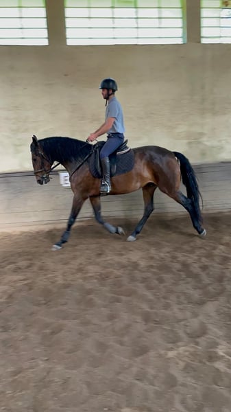 Beautiful large mare with a lot of talent For sale is an impressive Lusitano mare, born in 2019. With her elegant appearance and a height of 1.69 m, she is not only a real eye-catcher but also a true talent. Features: - Breed: Lusitano - Gender: Mare - Year of Birth: 2019 - Color: Bay - Height: 1.69 m This mare impresses with her charming character and willingness to learn. She is versatile and suitable for both leisure and competition riding. Her movements are smooth and expressive, making her an excellent partner for ambitious riders. PRADA also has a very kind character, which makes her a reliable horse. She passes this trait on to her offspring. This character combined with a very good pedigree (SPARTACUS X UNIVERSO II) makes her a truly exceptional mare. She has already had two wonderful foals and can be ridden by beginners in all three basic gaits. I can gladly provide more pictures and videos if interested.
