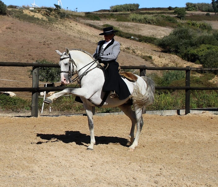 Mein Belmonte ist zwar nicht mehr jung ,aber superfit, gesund ,stark und absolut zuverlaessig . Es ist eine sehr seltene ,wenn nicht einmalige Gelegenheit, ein "Lebensversicherungspferd" zu erwerben.Da er mir sehr am herzen liegt, behalte ich mir vor, den neuen Besitzer gruendlich auszusuchen. Belmonte hat gefuehlt Hunderte Dressurpruefungen bis Avancado ( schwere M) gewonnen, kann aber auch Serienwechsel bis 2 er , Pirouetten, Piaffe, Passage, span Schritt,und natuerlich alle Seitengaenge in allen Gangarten. Er ist seit 10 Jahren bei mir und war keinen Tag krank oder lhm.Ein super gesundes starkes Pferd, der viel zu schade fuer die rente ist.Er hat nebenher hier allen Reitern , besonders den aengstlicheren, das Dressurreiten beigebracht. Sollte es jemand geben,der schon das reiten aufgeben will aus elchen Gruenden auch immer, hier ist die Gelegenheit, noch en paar Jahre sicher weiter zu reiten. Er wird verkauft,da wir aus altersgruenden unser Dressurunterichtsprogramm eingestellt haben und er sonst arbeitslos wird, dafuer ist er viel zu schade und hat zuviel Spass an der Sache