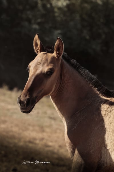 If you are a fan of genuine foal markings with wild patterns—such as eel stripes, zebra markings on the legs, shoulder crosses, and the very rare "cobwebbing" on the forehead—as well as the incredible Lusitano breed, our little Vicente might be just what you're looking for ;) He combines beauty, grace, and a kind, human-oriented character. Both of his parents are registered Lusitanos with the APSL; however, only his mother, Pandora FIC, is approved for breeding. His father, Nairobi FIC, is unlicensed, so Vicente receives the blue book of the "Raças Selectas" as a Cruzado. In the last two photos, you can see his father, Nairobi FIC (grullo/dun). If he is recognized as a stallion by the APSL in the future, Vicente will subsequently receive the APSL blue book, if desired. For more information about our adorable Vicente, please send us a personal message. We breed PSL/Lusitanos ourselves and also offer horses from other breeders here in Portugal. Our current sales horses can be found on Instagram: https://www.instagram.com/lusitanomaremmano?igsh=aTNkaXFma3RlYnJ1 We look forward to hearing from you :)